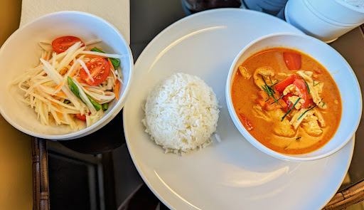 Service was great with the aforementioned charming lady and her husband who was preparing hot food. The food was very good (my panang curry with chicken, $11), but I was told Pad Thai (with chicken, $11) was not the best. Lunch specials (appetizer and entree) start with $10 (depends on your pick of protein). I had papaya salad for my choice of appetizer.