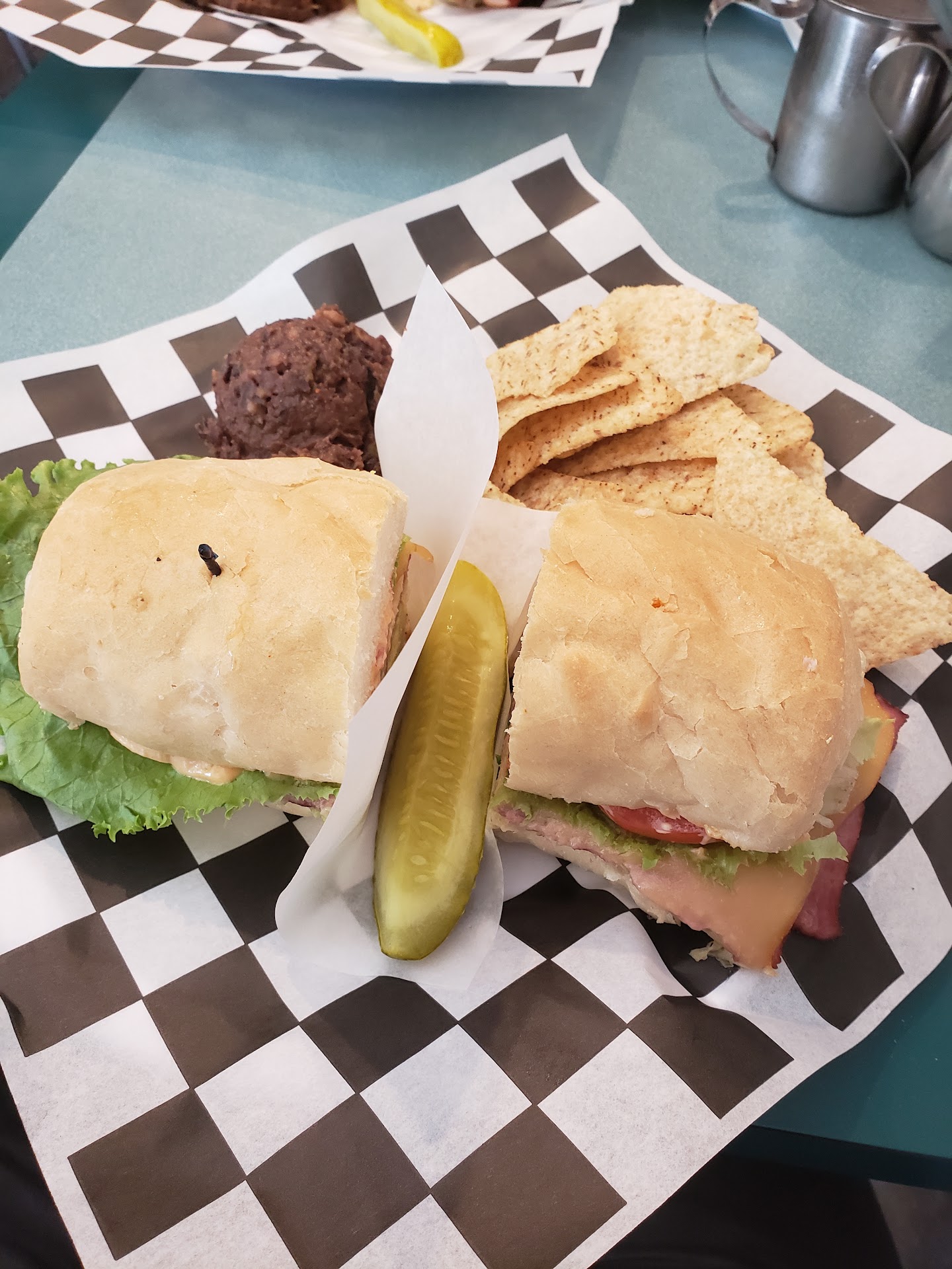 Yum! So I saw The Centre St cafe on Facebook all the time, and I just so happened to be in the neighborhood today, so decided to try it out! Must be Kismet, because the parking lot was packed (and the street nearby) but I got the only spot available. I had to wait a bit because it was FULL. Good sign! Got a spot within a 5 minute wait. Ordered quickly because I checked out the menu online. Ordered The Vinny, with the very friendly waitress. Got my food within 15 minutes (maybe less). No problem subtracting items from the Vinny. While I waited I noticed several things. The artwork on the walls, the customers, and the staff. Artwork is fun! Customers were smiling, STAFF WAS SMILING! The food was great (though I did not care for the chips and salsa (instead of the bean dip I requested the salsa) but I did recognize that it is QUALITY salsa. The Vinny is so packed with meat that I could barely fit my mouth around it! it comes hot (which I normally prefer) but I just now ate the other HALF of the sandwich COLD, and it was SO YUMMY! So hot or cold, it was good stuff. Seriously, even though it's a bit more expensive, this gives you enough for two meals (IMO). Basic takeaway, the AMBIANCE made this a great experience for me, and I WILL come again (and suggest it to others), and the food I got it good. I do love that they offer unusual items on the menu, as well (even if I don't try it, it sounds like...