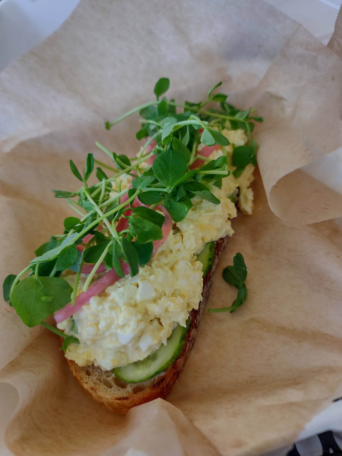Everything we tried was delicious. The pesto sandwich was amazing, the BLT instantly became my favorite (and the reason we’ll definitely come back!), and my son loved the open egg salad sandwich. The egg sausage sandwich was another hit — so good!