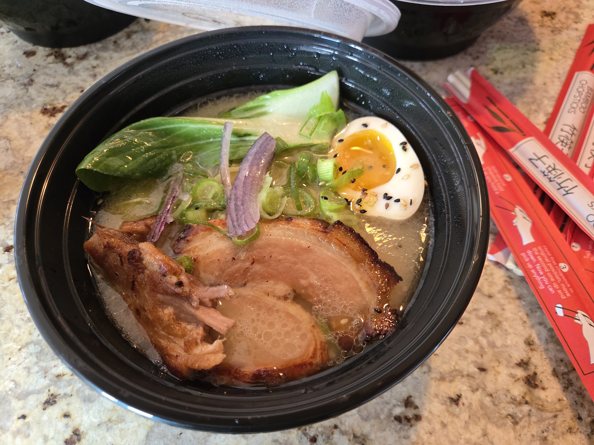 Overall this was a great joint for basic tonkatsu ramen. The broth has great flavor, but a little thin. The pork was good, not great - a little light on flavor, but I attribute that to the lack of fat and the thin slices. The egg is outstanding - amazing flavor and cooked perfect. The noodles are also excellent - al dente with good flavor. They could add a few accoutrements to jazz up the dish, but overall they’ve got the essentials down for a tonkatsu ramen. The one thing I don’t like is the plastic dish and plastic spoon even when you’re eating “for here”, but I get it - you’re serving this out of a food truck and aren’t trying to wash dishes up in that thing. The food truck rally atmosphere is great, but a little...