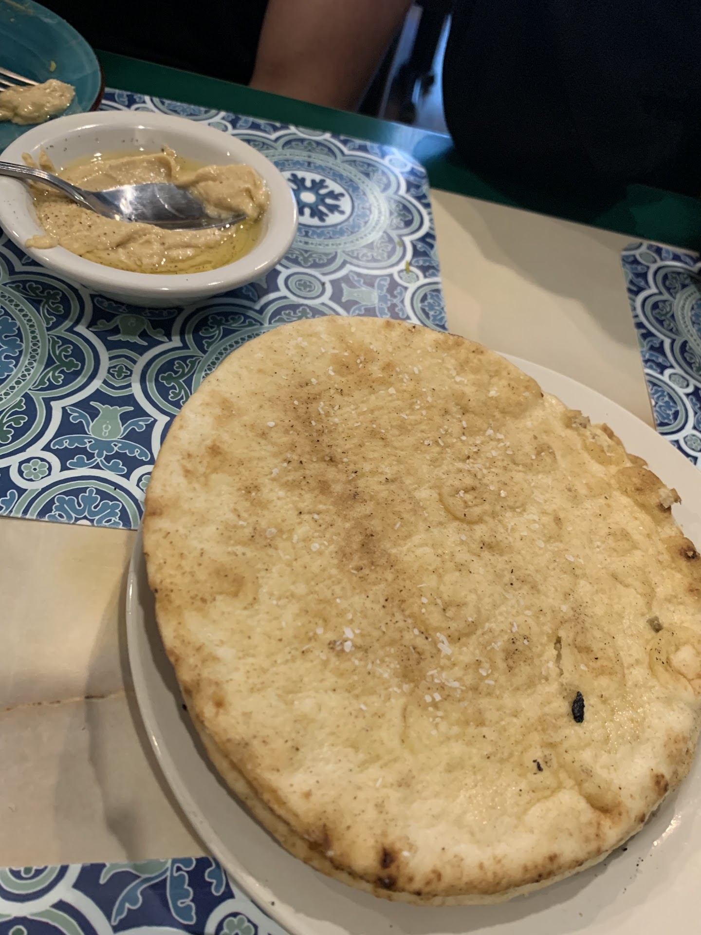 It is beautifully decorated inside, really has a "make yourself at home" kinda feel, and the pictures on the mantle of the fireplace tell a beautiful family story. The owner, Brent is incredibly generous and friendly. He asked if I'd been there before, and I explained that I have doordashed in the past, but this was my first time coming in. He said, "Boy are you in for a real treat!" While he cooked our food to order, he filled me up with complimentary hummus and pita. It was INCREDIBLE...