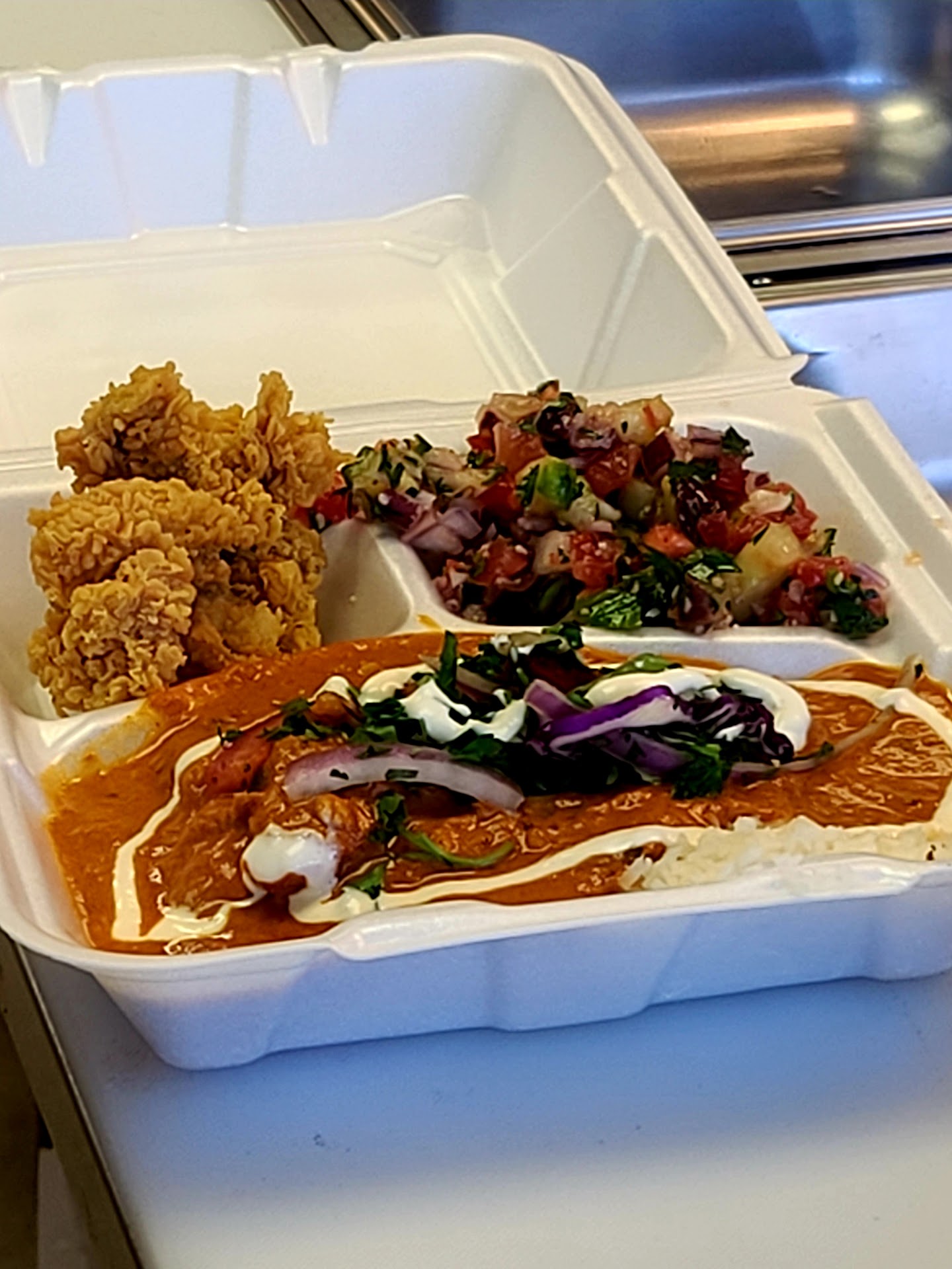 the whole restaurant was incredibly unsanitary that it was actually insane. once you walk inside, you're instantly hit by the scent of the dense airâ and obviously the crazy amounts of spice. they tell you to sit wherever but the tables, chairs, plates, etc were all dirty?? how can you run a business when you don't clean a thing? the whole place is a mess too. the bathrooms and kitchen is disgusting. they don't even use/wear gloves at all, they don't use measurements, and then the staff criticizes you when you don't like their food. absolutely disgusting.