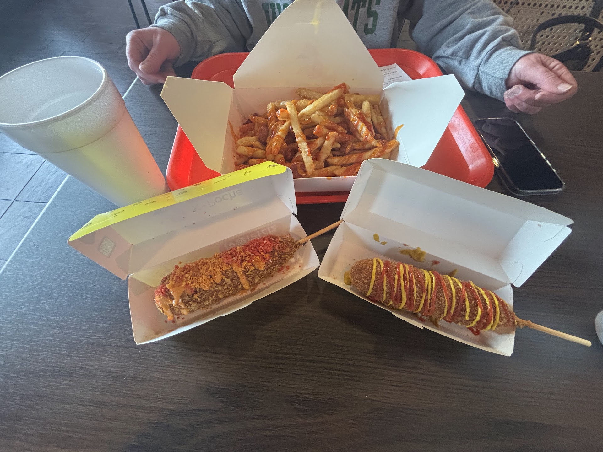 My wife went with their signature corn dog, which was classy, crispy, and disappeared before I could sneak a bite. That’s how I know it was legit.