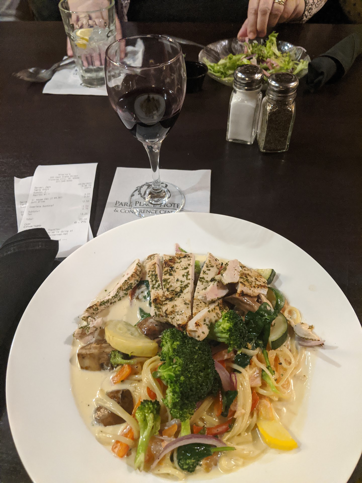The food in the restaurant was good but a little basic-- but the location is phenomenal and walking distance from downtown where there are countless bars, restaurants, dessert shops etc if you get tired of the food.