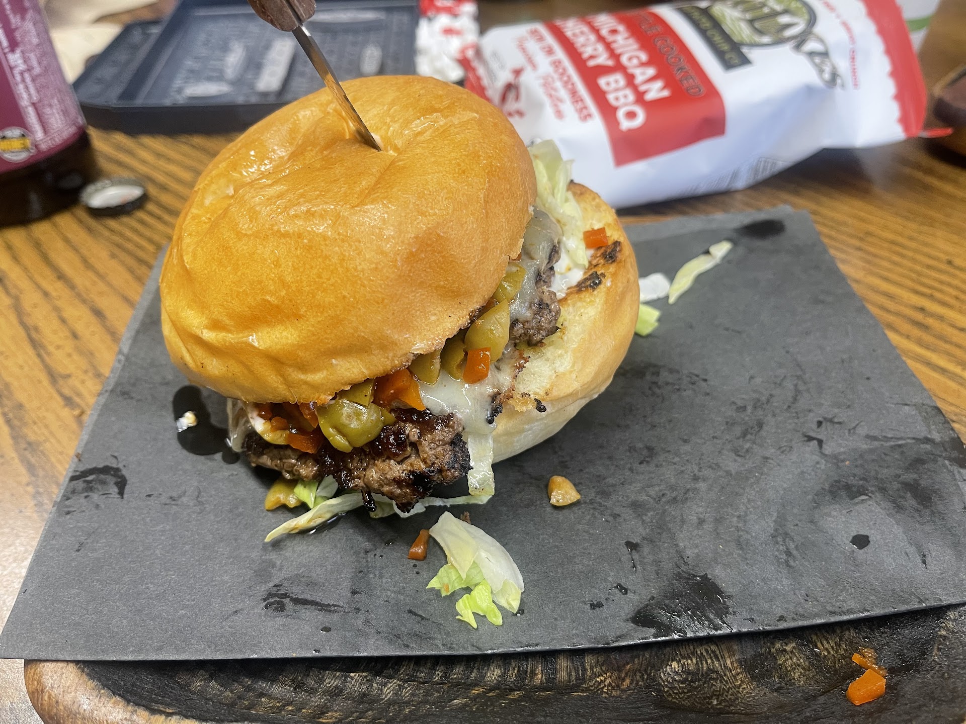 First off, this place is like stepping back in time to the 70's, wood panel walls, formica tabletops, old beer signs and other cool details, a lot of thought went into it, just a really cool vibe and staff was friendly and helpful. The new dining area on the other side of the patio has an old tube tv with vhs tapes you can play, the other tv was playing episodes of my favorite show Twin Peaks and they had cool merch, a shirt that looked like the Black Flag logo and one with Henry from Eraserhead on it (they must be huge Lynch fans like myself). The french fries were delicious and they give you an enormous amount of them, enough for like 3 people, I really do wish they had a smaller size, if it's just you you'll either walk out with a ton of them, I'll put mine in the air fryer or you'll just toss them and I don't like wasting food. Mine I got with the vinegar salt, to me they just tasted like normal salted fries. I got the basic Proper burger, shredded lettuce, pickles, american cheese, and a variation of the classic burger sauce, they call it a smashburger but it's not a smashburger, it's much bigger, doesn't have that super thin patty with the lacy edges and a hard sear, also it wasn't really seasoned all that well if at all, the bun was fancier than it needed to be for something like this and the burger sauce wasn't particularly flavorful, didn't stand out at all, I found myself dipping it in ketchup which I don't ever put on my burgers but it needed something extra. The burger itself was also kinda dry. You want to go out and get a better thing than you could make at home and I just make a better smashburger than this. I would definitely go back though, they had a ton of interesting sounding specialty burgers on a menu that seemed very well curated and maybe one of those would hit the spot more...