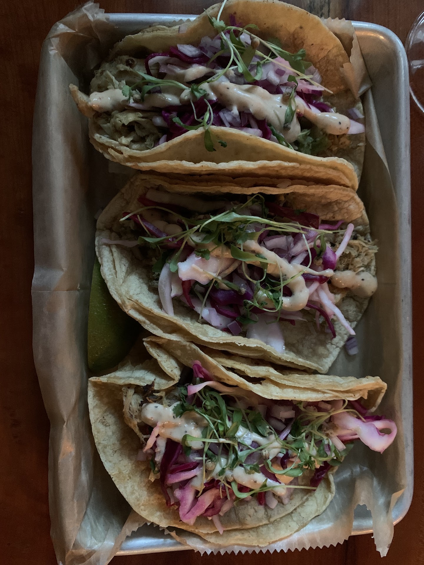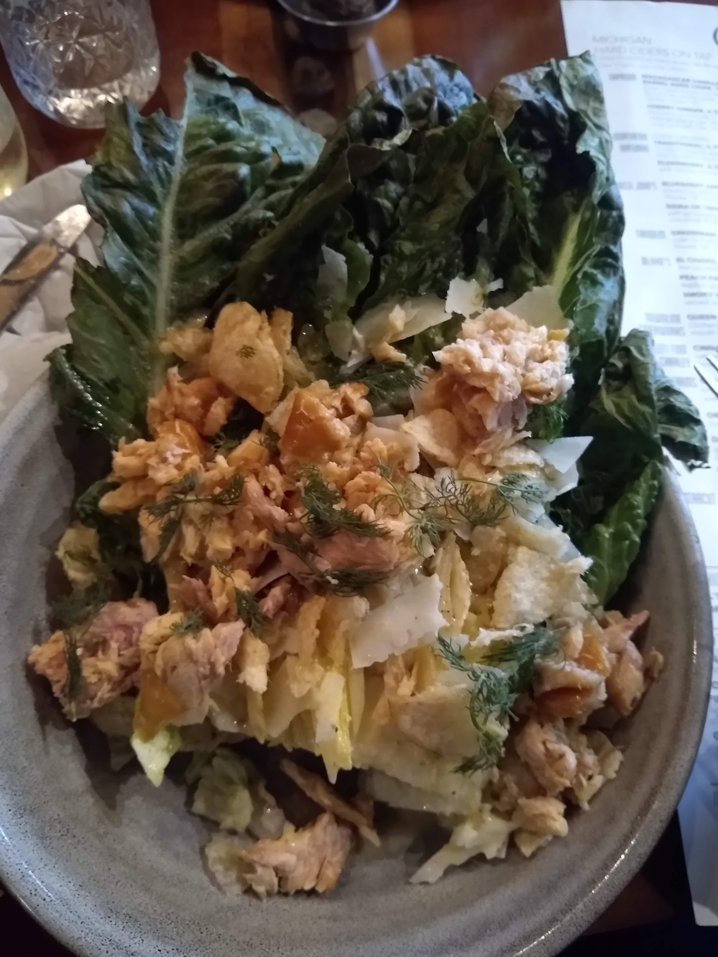 Read moreI grew up in Washington state, so I'm a bit of an apple enthusiast. I was very excited to find a cider house!!! I got a flight of 6 ciders in all, and I think the Queen Ann is my favorite so far. The waitress made several cider suggestions, and I can't say any of them were bad. My husband and I a got the hummus with kale and garbanzos on top for an appetizer, and despite the fact that my husband is fairly anti-kale he really liked it as well. If I were to change one thing I would have loved to see some carrot sticks, cucumber spears, or more nan. We ran out of stuff to dip into the very generous portion of hummus! For our meals I ordered the smoked trout Cesar salad and it was DELICIOUS!!! Grilled romaine? Genius! Potato chips on a salad? Heck yeah!! I'm the type of person that normally needs more than just a salad for a meal, but this salad was meal worthy. I did not leave hungry. My husband got the pepperoni pizza and added mushrooms. The mushrooms may not be the typical slices some expect, but they were so fresh and full of flavor! I'll admit I stole a few mushrooms from my husband's pizza, and went back for more. I would have loved putting those sauteed mushrooms as an option for my salad too.... maybe an option to consider in the future. Beyond the great food and drinks, my husband and I were in the restaurant on a Wednesday evening, so it may not have been as busy as it can get on the weekends. The service was very good and our water glasses were kept full. I didn't catch the waitress' name, but she was very sweet and seemed organized and prompt even while training a new waiter. I saw many other things on the menu that I can't wait to come back and try! Hopefully they will eventually get some apple desserts on the menu too... Perhaps apple crisp or a lavender creme brulee. Highly...