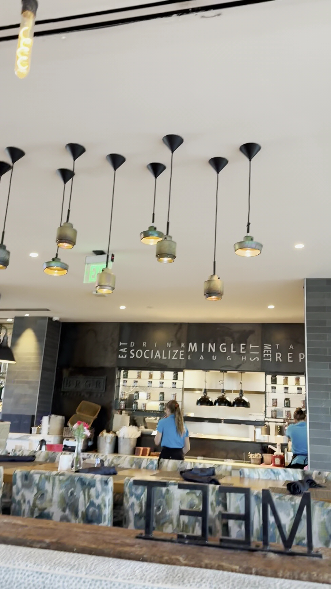 Attractive restaurant inside of Treasure Island Resort Hotel. Our family of four arrived late...just after 9PM, they close at 10 on Wednesdays. Staff was friendly, receptive to us despite the hour. We chose our own table. Decor is upscale and yet feels beachy and fun. Ordered the watermelon margarita $10...very good as it was not too sweet or overly fruity. A medly of flavors perfect for sipping. Kept our order simple...shrimp tacos $15 and the blue burger $16, kids had fish sticks $7 and kraft mac n cheese $7. Food came out after a little wait...considering there was only one other couple arriving after us and one couple at the bar. Tacos were made differently than the menu had described but were ok. Food arrived nicely plated, 3 mini flour tortilla tacos with chopped mango, red onion, and strawberries over small pieces of grilled shrimp. Fries on the side in a mini tin bucket with ranch for dipping. Missing pineapple slaw that was to come on the tacos, as the menu described was requested, that and a missing kids drink but our friendly waitress was quick to oblige. Subbed out the regular fries with zucchini fries for a unexpected $3 upcharge. Added a few nibbles of avocado to each of the tacos for $2. Burger and tin of skin-on fries looked good, made to order, roll looked even better. Skip the sauteed onions though...wet and too sweet for the burger. Ask for fresh onions instead. Kids meals were typical. Fish sticks appeared to be homemade. Surprised that they didn't offer the same for a mac n cheese. But no complaints from the kids. All in all an acceptable dining experience; most memorable for the gracious greeting on arrival, decor, and...
