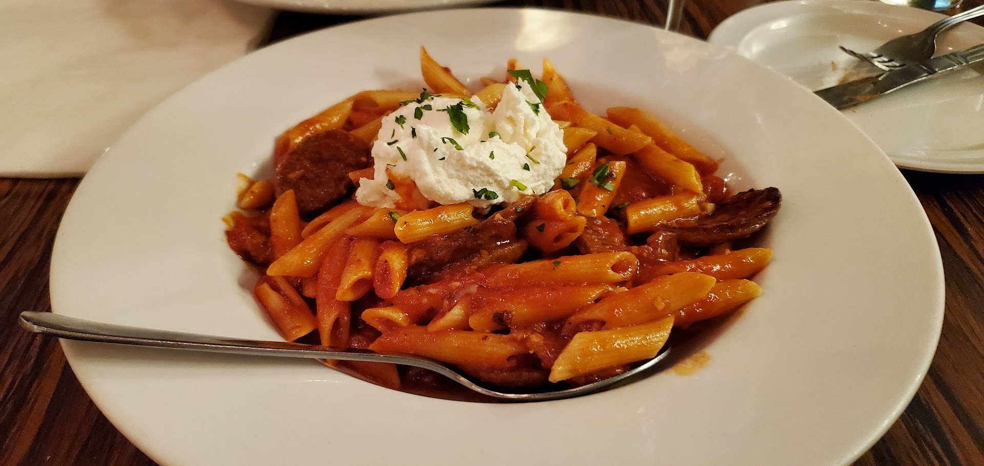 For mains I had the Pasta Pescatore which was good, but a little oily. My wife had the Chicken Piccata which she enjoyed. We accompanied those with some wines by the glass from their decent collection and they were fairly priced.