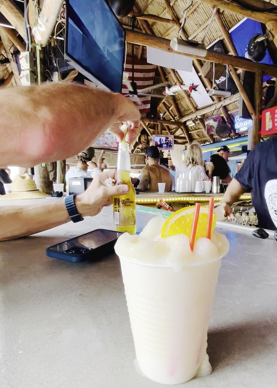 We are a group of 5 professional people between the ages of 52-62. Two of us are retired firefighters, one is an active fire chief, one is a business owner and one is a software engineer, (3 men, 2 women). We are locals and have patronized this bar several times mostly for the live music. Last night, at 8:30, we walked into this very crowded bar and got a drink. One of us was dancing on the dance floor and 3 of us were standing on the edge of the dance floor watching with a speaker very close to our ears. A bald man wearing a black shirt with no markings, or anything that indicated that he was an employee, ran up on us aggressively and was screaming and flailing his arms. We had just seen him drinking a beer and thought he was just an aggressive drunk. The regulars are known to be territorial here. We then figured out that he was telling us to move over to keep a pathway open behind us. We moved in, creating a 3 foot path between us and the people behind us. He continued to scream and I mouthed to him to calm down. My husband told him to go drink his beer. He left and a minute later, a bouncer came over and asked if we had a problem. We said no and the bouncer left. At no time did anyone ask us to leave and we would have been surprised if they did. Five minutes later, the bald man, now referring to himself as the owner, arrived with the police and we were asked to step outside. The bald guy yelled that he wanted all of us out, once again, yelling and flailing. Four police officers took our ID and ran them. The officer actually apologized to us but stated he had to ask us to leave because it was private property. We obliged gladly at that point. We were also told that we can never return. What an outrageous reaction to paying customers because we were standing in the wrong place. How about some ropes or signs to indicate this? How about employees wearing something so patrons know who they’re talking to? How about approaching patrons with some respect? How about your staff not drinking when they’re on duty? There are so many other bars on the beach with live music where we can spend our money. I highly recommend that anyone reading this steer clear of this place. This “owner” was just looking to fight. Getting 4 police officers involved was outrageous and a waste of resources. If you want to go to a fun dive bar with live music, I recommend the Drunken Clam.