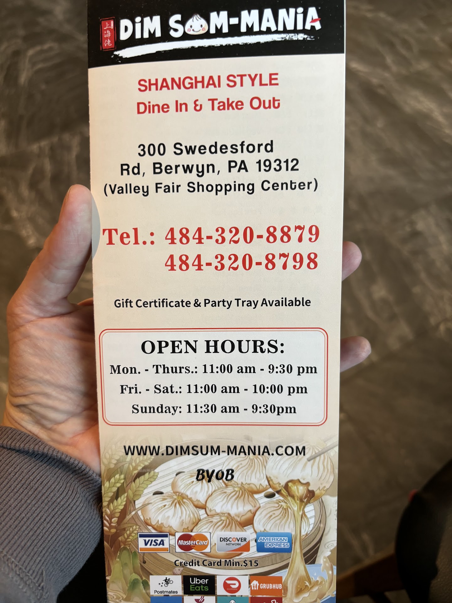 I disagree with Eleni and Ina this dim sum place is excellent and a great addition to the area.... it is very authentic, nothing was too salty , and better than the average Flushing or Mott Street dim sum place and certainly better than anything in Philly Chinatown. for example they have Shanghai stir-fried rice cakes almost impossible to find in any regular dim sum place (one or two places in Cambridge Massachusetts and Pittsburgh and none in Philly), lotus leaf wrapped sticky rice I defy you to find sticky rice anywhere nine out of 10 Thai restaurants don't even have sticky rice in this area , and the seaweed egg soup was a revelation , the mushroom dim sum was fire .we had several different dim sums as well as a couple of Chinese American standards the dim sums were phenomenal the Chinese American was decent, the soup was one of the best I've ever had the flavor and texture was stellar. top to bottom the service was hospitable and the vibe was fun. you just can't beat it on swedesford road now I just hope the quality holds...
