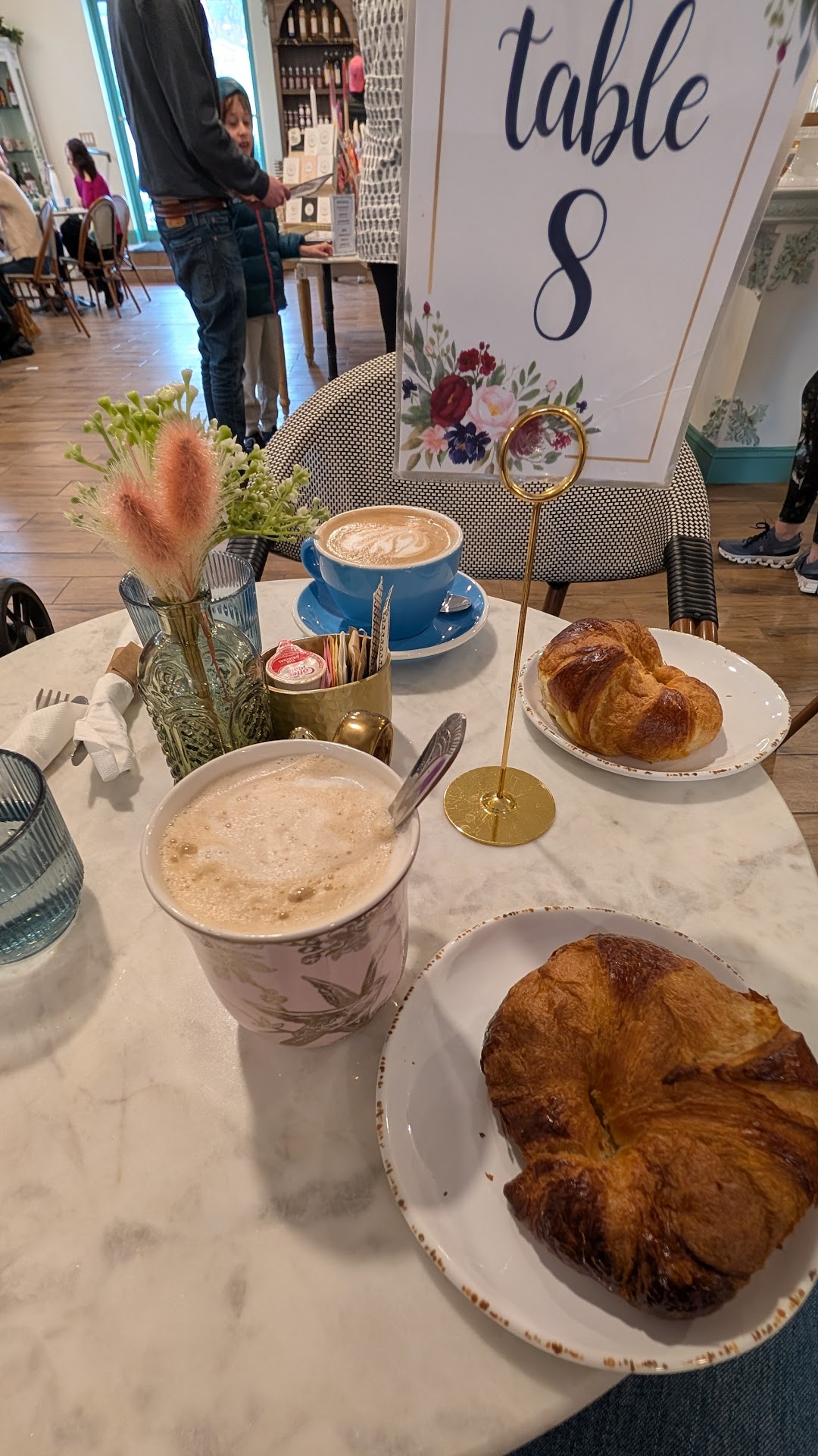 Yesterday my daughter and I were looking for a place to grab coffee and I suggested Matines. I'm so glad I did, the coffee and pastry service were an entirely different experience. The coffees in particular stood out, I got a plain cafe au lait and my daughter got a peppermint mocha, both were excellent. The croissants were buttery and flaky, just what we were looking for. The store was packed and it took some time to place our orders but everyone from the cashier to the people bringing the food and drinks were incredibly nice and helpful.