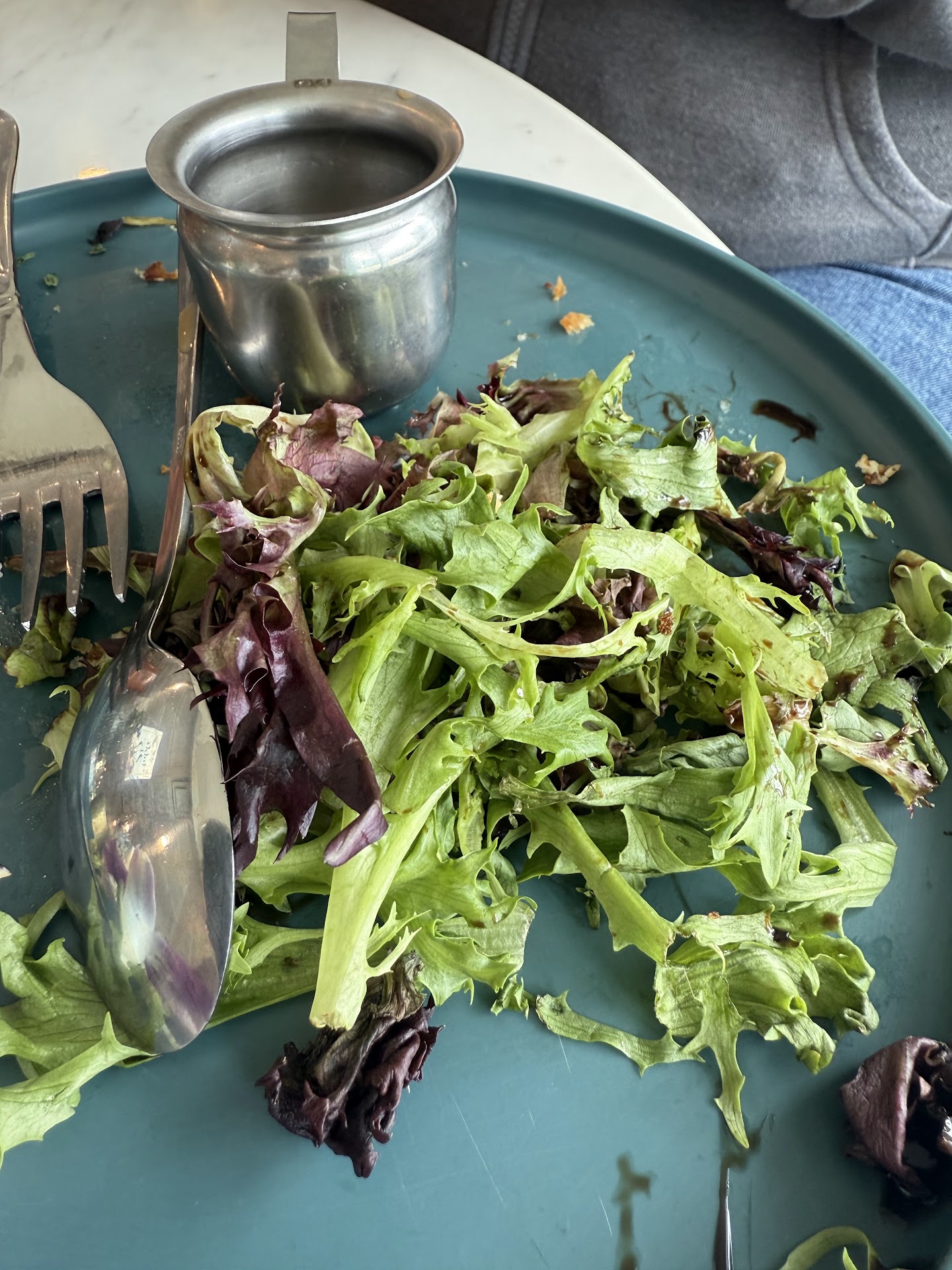 Finally after four attempts, a friend and I were able to get in the teeny weenie parking lot that services The café. That is not the fault of the restaurant. It’s just unbelievably tight and people drive unbelievably stupidly on the Main Line.