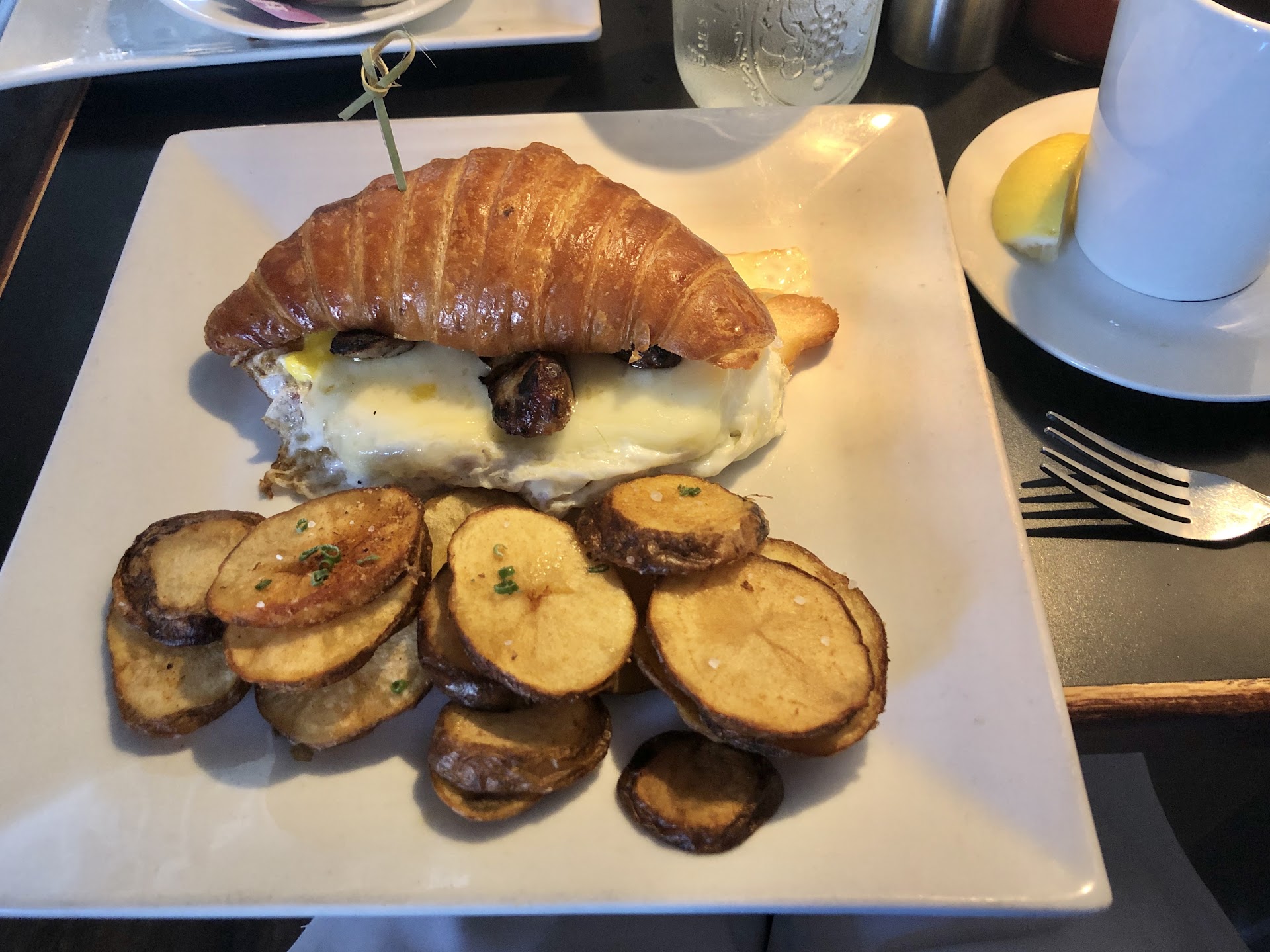 While waiting to be seated, the hostess was on the phone so instructed us to find an open table outside. We waited at the table without menus and saw party after party be seated with menus, and wait staff take drink orders! I went back inside for menus and the waitress said she'd bring them by. She seemed annoyed when she finally arrived at our table to take our order, but we couldn't order because we *still never got menus*. This was a Tuesday at 11! Not a peak time by any means. Our food was so underwhelming that we didn't even finish. Pictured: Salmon BLT and Monte Cristo.