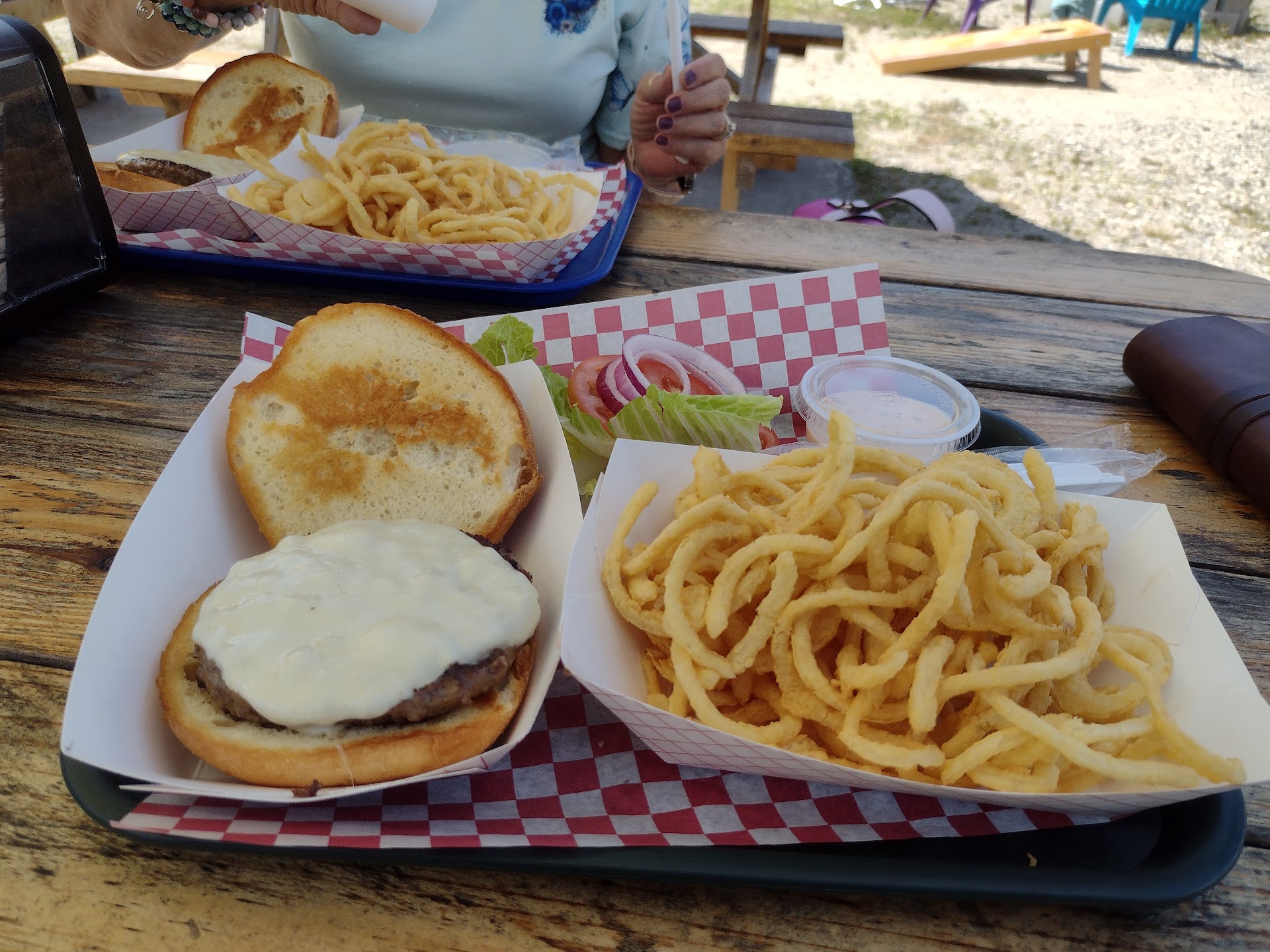 Read moreI grew up in this area, and haven't lived here for some time. Back in the day there used to be snack bar / dairy bars like this scattered through the area. They have all since dried up or been bought out by people. This is the first time in decades that I've had decent onion rings, the way I'm used to from my earlier life. They were cooked perfectly, the frying oil is pristinely clean. That keeps the onions tasting nice and light. The cheeseburger I had was excellent, probably a premade Patty but still tasty. The difference is it was cooked by somebody who knows what they're doing. The bun was absolutely perfectly grilled. With a little butter and still crispy on the face. How refreshing it is to be able to get a decent cheeseburger and some real onion rings. The onion rings even come with a nice dipping sauce it has a little twang of horseradish. I highly recommend this place! They even bring the food to your table, and you can sit at the picnic tables and join the shade and a nice breeze. To me it just...