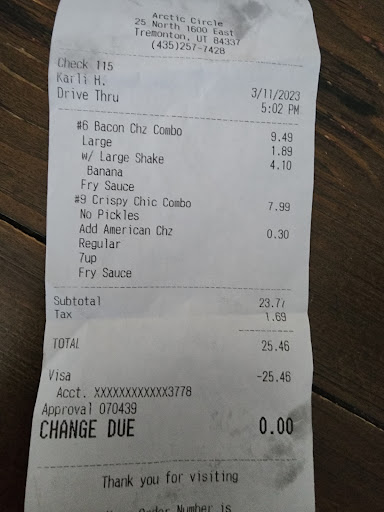 Ā Ā Ā Read moreArctic Circle has been a favorite of mine since early childhood and they remain consistently worthy of my love. The food is always fresh and delicious and I can't recall the last time my order had an error. No matter what food or treat my family or I'm in the mood for, they've got something to satisfy the cravings. We always enjoy their seasonal shakes and the fry sauce is in a class of it's own. If you like fish and chips, Arctic Circle has it, and the battered halibut sandwich is incredible too.