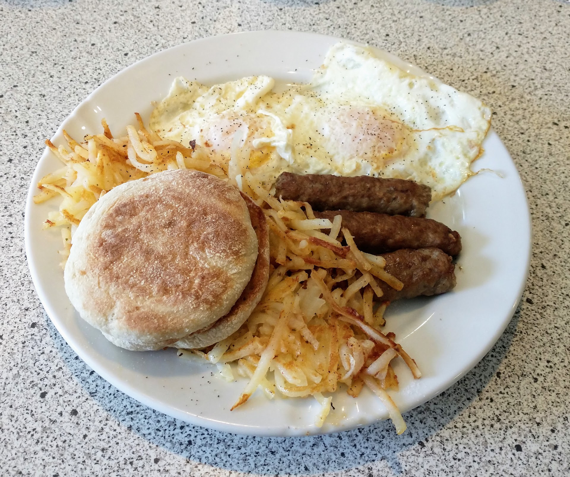 The menu isn't too extensive, but there's something for everybody. I opted for the 'Basic' breakfast, which consists of two eggs, choice of meat, potato and bread. When he asked how I wanted my eggs done, I said 'soft scrambled' and he had no idea what I wanted. Instead of going into what constitutes soft scramble versus regular scramble, which is only a few minutes less on a grill, I decided to go with another option. Again, not a big deal whatsoever.