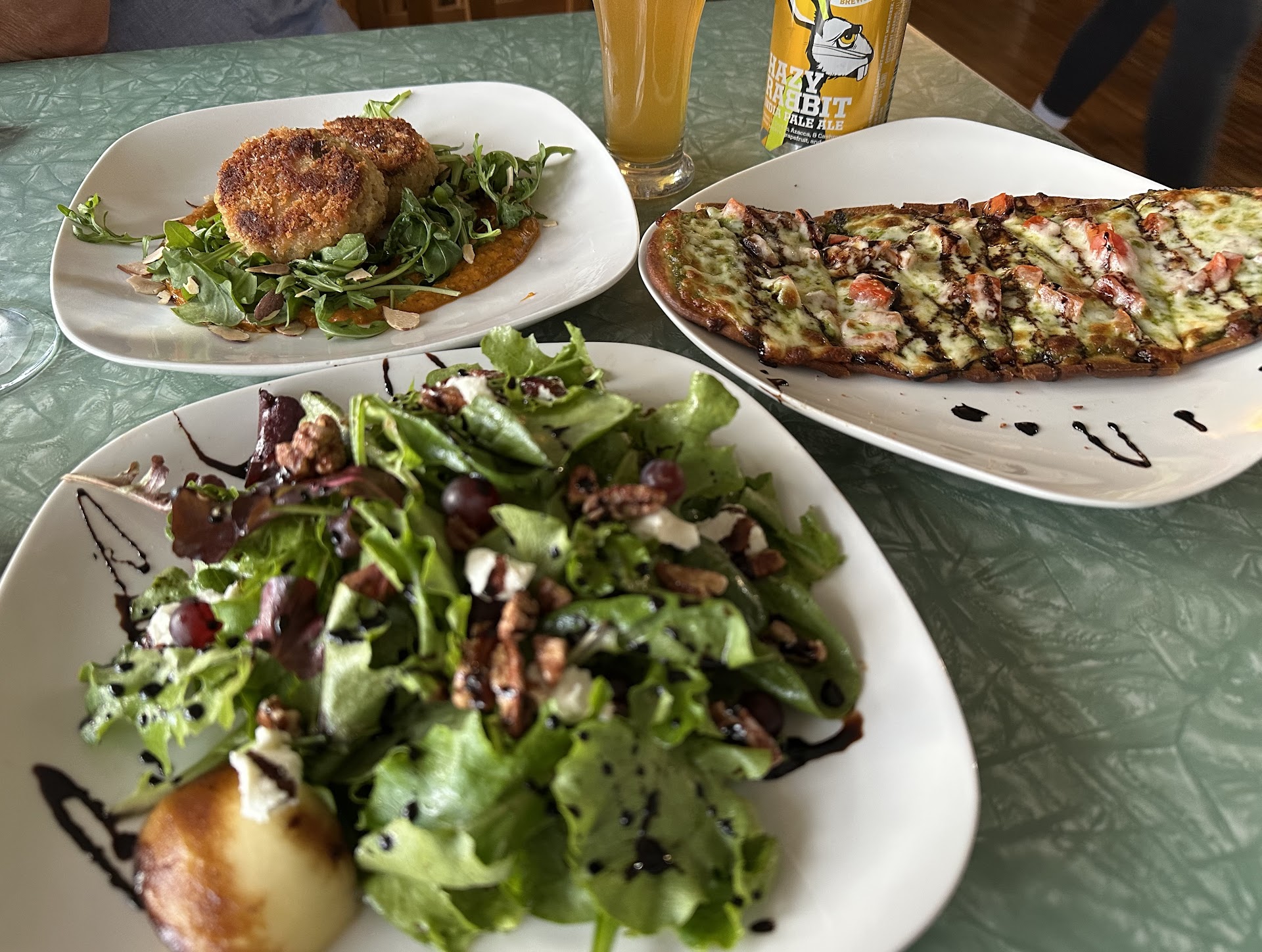 This was my first visit to this historic location. This was a medium sized room with plenty of tables, and space if you choose to come with a medium-to-large party, or an intimate date of 2. There is a bar at the front of the house with a television that was innocuous. The menu is revolving for season, and what is fresh and available, so the items might not be the same when someone else visits. I choose 2 appetizers and a main course. I got the Walnut balls with a side of fresh made honey mustard, and pesto mozzarella flat bread. The flat bread was excellent, the pesto was fresh, complimented the other flavoures without competing, or overpowering. The Walnut balls were a mix of Walnut, and a cheese and some others ingredients. It paired well with the honey mustard, which was a dijon honey mustard, and not too sweet. For the the main course I got the catfish etouffee. The rice was cooked well, and the catfish was boiled over a blackening, the sauce was flavourful, but not spicy. There was an excellent view of the River and depending on when you come there is live music performances to experience. As I do not drink I cannot say to any stock of local beer, or wine, or any specials they have. They also have deserts, of which I also did not partake in. In all this was a great restaurant, there was care out into the menu, the food, the mood and presentation. Of note: this is one of the few times where the appetizer was spaced with the salad and then spaced with the main course. The importanceof having each course given the time to be enjoyed beforethe next one is so very Important to the experience. Somethingto not be taken...
