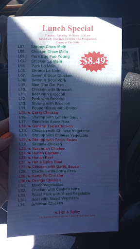 Ok so I'm going to try to make this fairly short and sweet, but I'm southern and have the gift of gab, so please forgive me. My family and I like variety when we eat Chinese food so we order a good bit. This was our first trip to this restaurant and we choose this one because of the Google reviews (so thank you to those who've reviewed this restaurant before me). We purchased General Tso's & Bourbon Chicken dinner combinations (C-20 & C-39), Pork Chow Mei Fun (pork pancit), Chicken Lo Mein, Chicken Stick, and Cream Cheese Wantons. We ordered over the phone on the way as it was 18 mins away (Chiefland). As for our thoughts leading to this 5 🌟 review, this is some of the best Chinese food we have ever eaten. The egg rolls (come with dinner combinations) were not greasy like they have been at other restaurants, the Wantons were stuffed with double what we've had at other restaurants, the General Tso's chicken wasn't too hot or too sweet, the Pork Chow Mei Fun and the Chicken Lo Mein had lots of meat in them. On top of every thing being absolutely perfect they included 12 doughnuts for free (which we discovered at home). One thing extra... When we arrived to pick up our food I discovered they had the Guava candy on the counter, I haven't seen or had those in years and my brother asked the sweet young lady if they had bags for sale and she said YES! WOOHOO! I have Guava candy to take back to SC! Sorry for the long review ladies and gents, but in good conscience I couldn't just say food was delicious. Seriously, if you like Chinese food, give this place a try, you will not regret it!