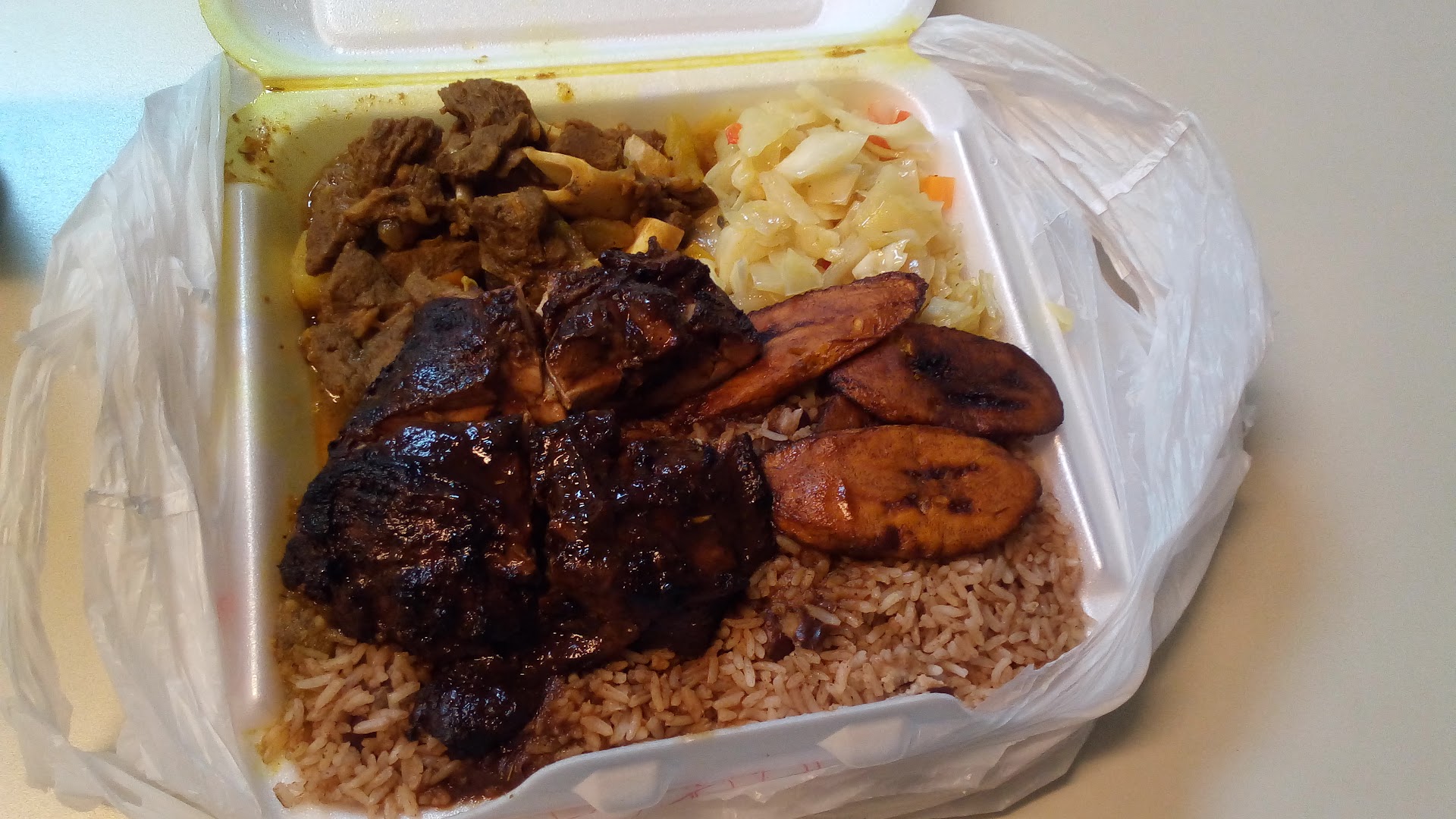 Read moreThis place was recommended to me by someone who's never been here before! So since I was in the area I decided why not, I'll try them! I called ahead like the ratings suggested. Well I still waited for the food, no biggie right!! The lovely young lady that took my order was very nice in the phone and in person(I can't say that much for the heavy set young man at all). So that made the fact I was waiting ok. I get back to where I was to eat..... 1st. They only give me four very dry, and cold plantains with the meat combo (it's a large with two choices of meat) 2nd. The cabbage was very very hard not steamed just cut and served. Now I like a little crunch to my cabbage but this was just raw cabbage. 3rd. I got one piece of jerk chicken, it was very flavorful and cold. 4th. I got Curry goat also cold. I was only 5 minutes away from where I was going so no way after I waited and the 5 minutes drive should it have been cold! I thought the price was good for what I ordered, the service (from the young lady) was good, but the food should've been warmer, and cooked just a little longer (just the cabbage) and just maybe, no not maybe more chicken. Overall I'd give them another try to redeem themselves. This restaurant doesn't have a eat in setting it's small, but seems to be very clean. I suggest ordering ahead. Parking is...