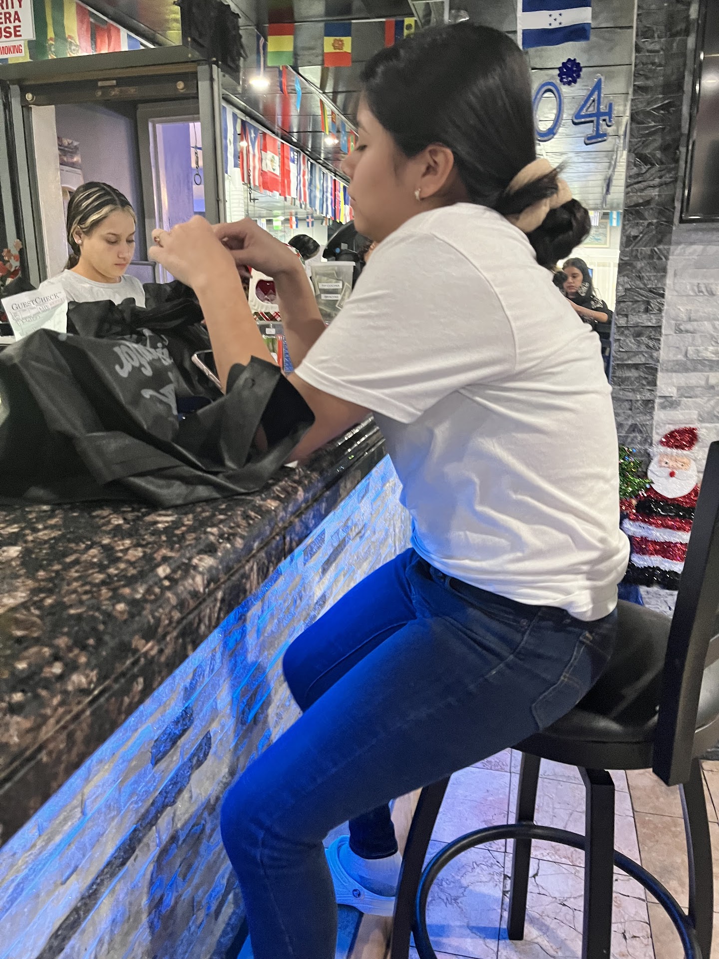 People please do NOT come HERE! Below in the blue pants is the waitress that completely dismissed my family.