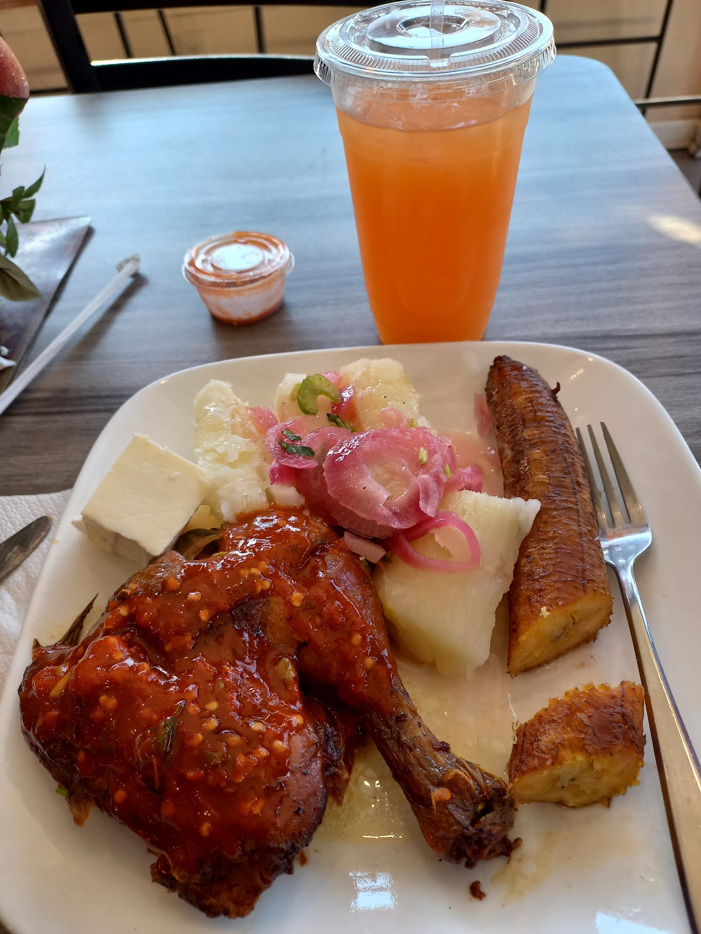 Read moreI wasn't a fan. We went around noon because the place came highly recommended. However, the chicken leg quarter was hard from sitting too long and the white rice was very hard. I will say that the passion fruit juice, the hot sauce and the beans were all amazing though. The service was also amazing. It's a shame. Perhaps we came at...