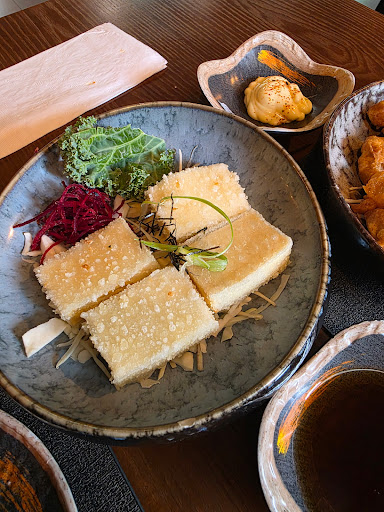 Agedashi tofu: crisp tofu with a savory sauce.