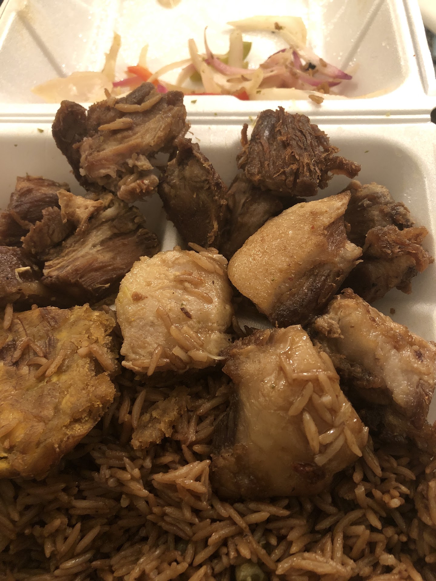Ā Ā Ā Read morePick up to go! This place gets a four for the AWESOME FOOD IT HAS. This is your typical hole in the wall type restaurant, (those that have banging food, but you don't go to sit there and eat). I always go for griot et banan pesee, which is Fried Pork and fried plantains! I get the large for $12 and it feeds two people. Prices are pretty low, the wait time is not that long depending on the time you arrive, note that busy times are 4-6 when people are leaving from work. Also try the Kabrit, (fried goat) which is really good, as well as the Ke Bef (Oxtail) The decoration is lacking because it is a hole in the wall, but that's the charm! Who doesn't like a hole...