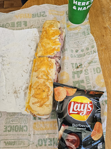 The food is ok. It subway. If you’ve been here before you know what it tastes like. They are out of my favorite bread most of the time. They don’t skimp on the proteins usually, but when it gets to veggies and condiments they will either over do it and make the sandwich sloppy, or just put a few leaves or peppers on there. Just no consistency. But that’s across the board with most sandwiche chains.