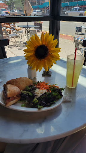 Read moreEasy street parking. Really cute restaurant with original wood floors and some exposed brick. Cute tables and booths. Booths have adorable chandeliers. Order at the counter, then choose a seat, and food is brought to you. I had The Butcher, which was recommended by the counter server. It came with a salad. I grabbed a bag of chips, as well, and had the homemade lemonade to drink. The sandwich was amazingly fresh and so flavorful - a perfect medley of sweet and salty. You could taste every element. I've never had anything like it, but it all came together so well, and the ciabatta bread was divine. A spring salad with carrots and parmesan and a basalmic vinaigrette was the perfect accompaniment! The lemonade was delightful - not too tart and not too sweet. I'll be back to try other items when I am back in town. Lovely food...
