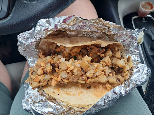 Read moreFriendly dude selling huge tasty tacos. I got two breakfast tacos on corn tortillas, one brisket and one barbacoa. Tortillas are tasty and sturdy enough to not break without being huge thick ones. Eggs/potatoes/pico/meat/refried beans inside were all super tasty. The green salsa was really nice (it's the smooth creamy kind, I think an oil/chile emulsion, maybe with avocado but I don't think so). The orange salsa was freaking incredible (the same smooth style as the green but with habaneros) with a bit more heat. The red looked tasty as well but I didn't try that (tomato based, not sure if it was a fresh or cooked version since I didn't have it). You may need a fork to catch some overflow, they seriously load these tortillas full, $5-$6 per taco is definitely fair given the size. They offered flour and corn tortillas or they can do tacos in a bowl instead if you're avoiding carbs. Outdoor covered seating is available. Easy recommendation. We don't get out that way too often but will definitely stop by the...