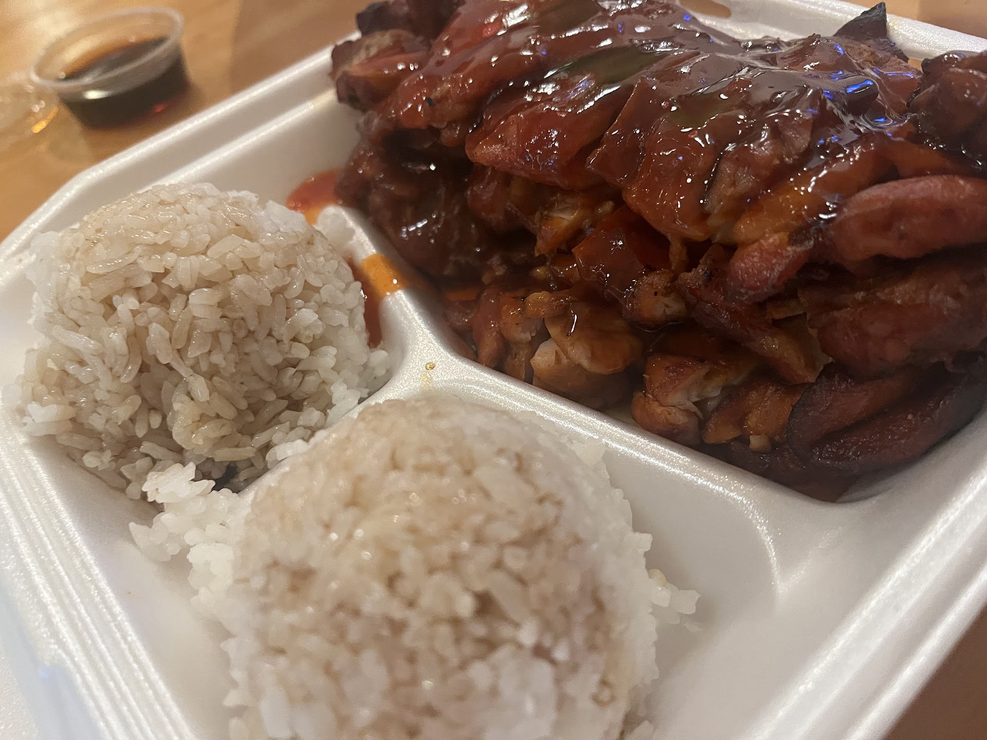 Read moreI went in knowing exactly what I wanted to order: Shrimp Yakisoba and miso soup. Yakisoba are thick, pan fried asian noodles. I went in and this short girl took my order, was super nice, and my food didn't take long to order. She brings me my order, and says she has my "shrimp fried rice" for me. .... Fried rice? FRIED RICE? Look, I work in food, and I understand that miscommunications can occur, not a huge deal. Maybe their rice is good. Though I had my heart set on noodles, I decided I'd live with the rice. What really irritated me was the fact that I told her I ordered the yakisoba noodles, and she replied with "I took your order as fried rice, then confirmed it with you." ....I didn't even know that there was fried rice on the menu, why would I have said that instead of the noodles I always get? How and in what way does "yakisoba" sound like "fried rice"? And she did NOT confirm my order. She asked me if there was anything else I would like, if I needed a fork, and to sign the slip since I used my card. I said "no, I don't need a fork", and signed the slip. I even tipped them, since she was so friendly and I knew the food didn't take long. When I did tell her later that I ordered the noodles, she looked at me like I was stupid and there was absolutely no way she could fix my order to be that: what I ordered. Later, I saw that there was a total of 11 shrimp buried in a 2 lb mound of fried rice. 11. They don't skimp on their chicken this bad. Holy cow! Never eating from any Joy Teriyaki restaurant again if this is the quality of service and food we receive....