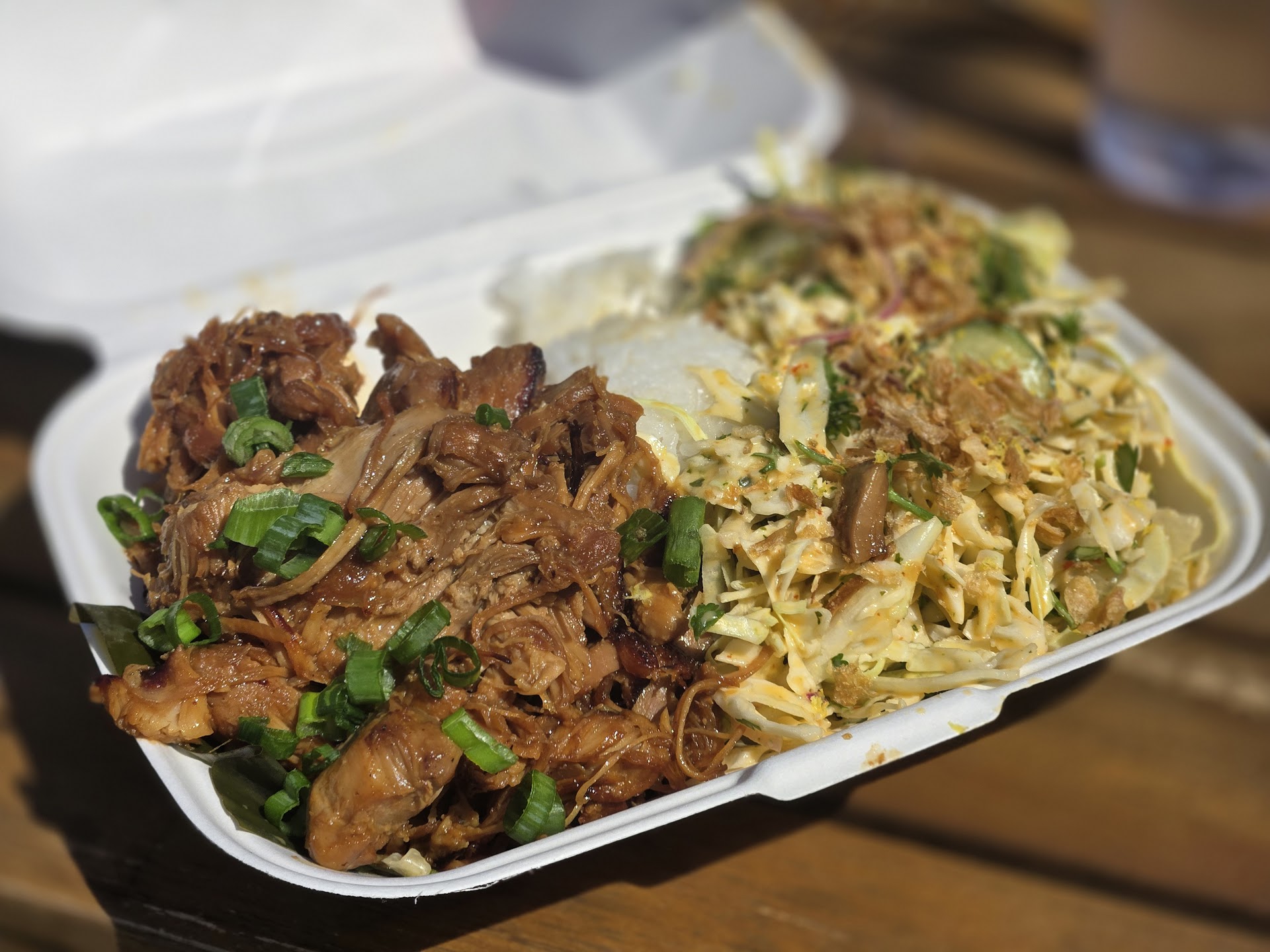 Started with the Garlic Shrimp wontons… I will be dreaming about those for a while. Amazing dipping sauce comes with them. I highly recommend as a starter. Being Saturday, I got the combo, Kalua Pork and the Korean Fried Chicken… double Mac Salad (because I love Mac salad & Lulu’s didn’t disappoint, their Lulu sauce is very tasty!). Kalua Pork was nicely smoked and I appreciated some crispy bits (it was juicy and delicious, there was just a few crispy bits that I personally enjoyed). Korean Fried Chicken was so flavorful, amazing spice blend and the right amount of saucing. Perfect balance of sweet, savory, spicy (not super spicy, very approachable). My partner got the shoyu chicken, I went to sample hers… it was gone 😁. Needless to say, we thoroughly enjoyed our meals and experience. Owner/operators are super sweet people and you can tell they love and appreciate the food they serve. I recommend everything we ordered, and look forward to going back on another day to snag another...