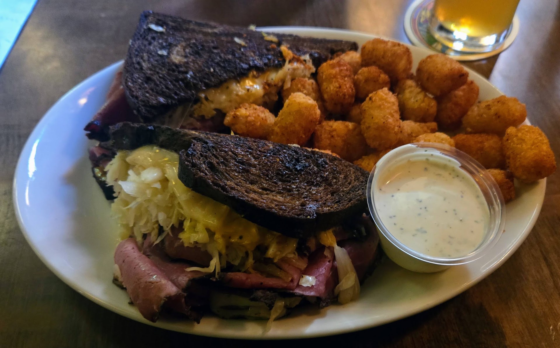 My wife’s Smokestack Mac & Cheese ($18.75) was dry as a bone and barely warm. Not exactly comfort food. My Reuben Kincaid sandwich ($22.75), on the other hand, came out hot, as did the Cajun tots. Points for that. And yes, I rhyme sometimes … I guess that makes me a culinary Longfellow.