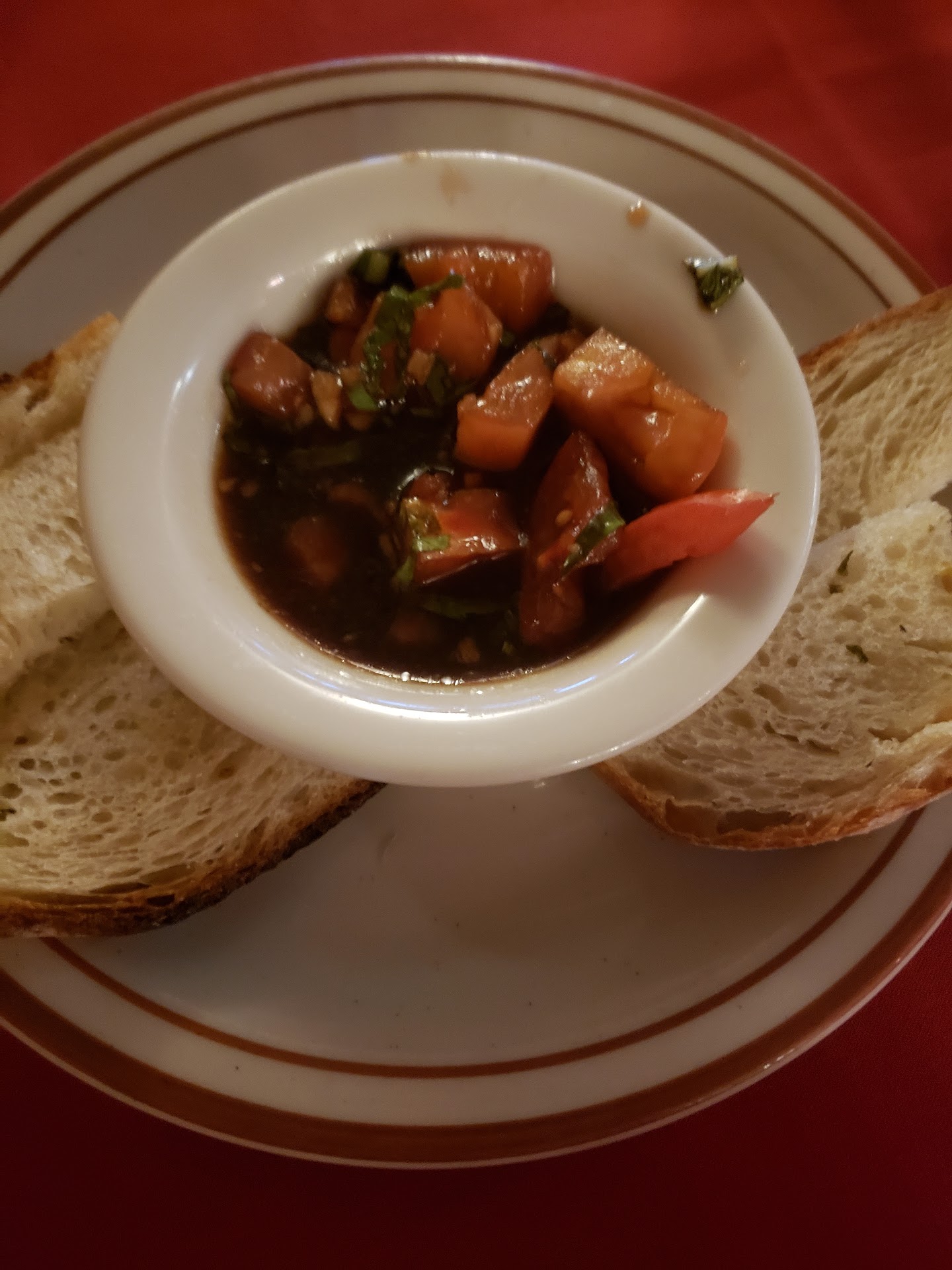 Read moreThis was our first time coming to this restaurant. I've added the menu to the pictures. But I also added our food pictures too. So please click on the pictures. The bread and dip is delicious. The salad barely had any salad dressing on it. So they gave me a small bowl of dressing. The Male server brought our appetizers me and my husband each got shrimp and mushroom and the Male server hesitated and switched plates he decided to hand my husbands plate to me and gave my plate to my husband like he was confused who was supposed to get what but what he was doing was one plate had 5 shrimp and the other plate had 9 shrimp lol lol so the server gave me the 9 shrimp instead of my husband which I thought was kinda funny. But honestly the kitchen should be making sure the plate has an even amount of shrimp going out on plates especially when there going to the same tables. It was very obvious. Also the dish said mushrooms and my husband had 1/4 of a mushroom on his plate. I had the Lobster Ravioli to me it didn't taste like lobster but it did taste like seafood and it did taste good. My husband had Chicken Parmesan he said it was good but he wouldn't say it was great. The reason why we're scoring the restaurant a 3 is because of how extremely loud the is. They have the dishes outside the kitchen area and the guy who does it is so loud that he doesn't care how much noise he is making. They also put the used dishes in the bucket at the entrance just inside the kitchen and that makes a lot of loud noises as it's open with no blockers to the dining area. It was so loud in there we couldn't hear our waitress. People were talking loud. We thought Mo's was loud. This place is much louder. In the future we will get food to go if we decide we want to try other food. The parking is parell parking and you can not park in the back. If you can handle really loud places then give this place a try. If this info is helpful and you like the pics please click Like...