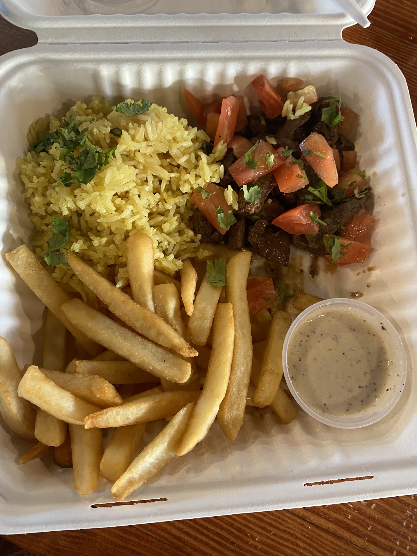 $$ Today, I ventured into "Titan's Kitchen" in Troutdale, hoping for a nostalgic taste of my aunt's Peruvian cooking. Let's just say it was a culinary adventure that left me somewhere between amused and puzzled. I bravely ordered the "LOMO SALTADO," a quintessential Peruvian delight. But surprise, it came with yellow rice instead of the traditional white! For those not familiar with Peruvian cuisine, that's a quirky twist.