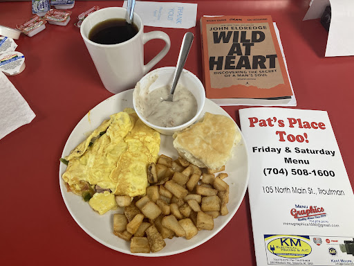Read moreOur first time at Pat's Place Too. Glad we stopped in. Quiet, quaint, and great place for a meal. Sheila was our server. She was very friendly, courteous, and attentive. Had a sample of Livermush. Similar to scrapple. Decided to have the bacon and eggs with home fries. Some of the best home fries I've ever had other than what I make at home. Wife had the gravy and biscuits and was very satisfied. Coffee was great and Sheila never let the cup get empty. This is our 3rd spot we've tried in the Mooresville , Troutman , Statesville area. So far, it's the best overall. Will definitely return. Go by and...