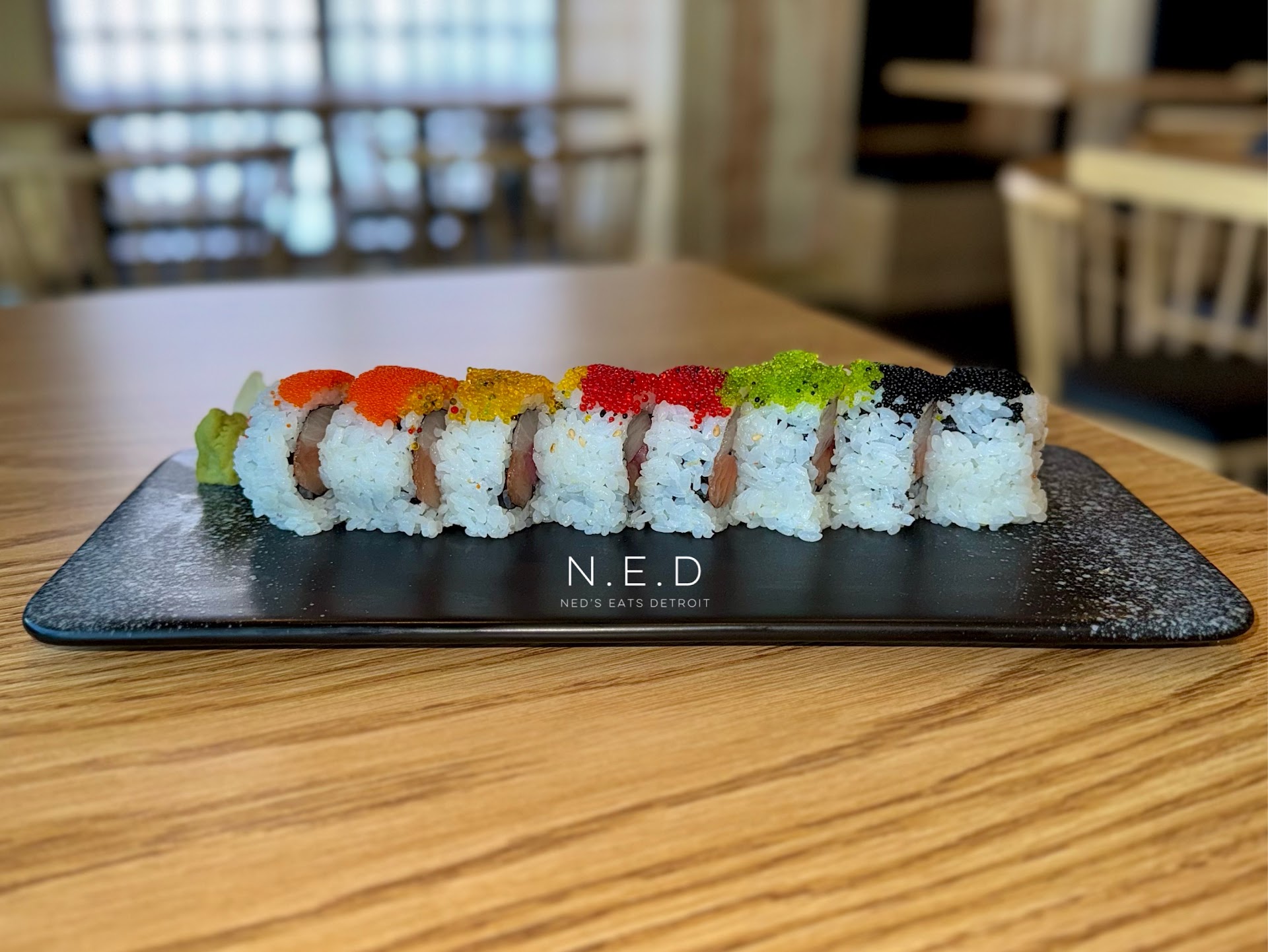 I LOVE Sushi. It is a love I share with both my daughters, my youngest more than my oldest. On this occasion we were out and about and mapped, Sushi near me, and happened upon Aji Sushi. When we entered we were promptly greeted. This place is THE ONLY all you can eat Sushi in Michigan (there is a buffet style one) however these are made to order for you in what they call rounds. That being said we had questions. We had been to one on our Vacation in Panama City, FL. This place offers their entire menu for the all you can eat. They also offer a happy hour. Once we were seated our waiter Feeby immediately greeted us and took our drink order. He explained their happy hour and all you can eat Sushi. I ordered their Sweet and Sassy roll and their Mango Tuna Roll. My daughter ordered 2 avocado cucumber rolls and their Black Jack Roll. We each also added their house ginger salad. Our waiter accidentally brought us each a Miso soup. (No charge to us) Now that you know all that I will get into the food. The Miso soup broth was extremely flavorful and it was filled with seaweed, tofu and green onions. Our ginger salad was not like many others (watery and ginger dressing only on top). This salad had the dressing throughout the bowl in the perfect amount. My rolls were beyond delicious. Some Sushi is one note...NOT these rolls. Every bite was a tasty experience. Most Mango rolls I've had in the past have ZERO mango flavor, well NOT this roll, you really tasted not only the mango but the tuna as well. From first bite to last, flavor throughout. My daughters Avacado cucumber roll was creamy and crunchy, very fresh ingredients in everything. Her Black Jack roll was full of amazing flavors I am at a loss for words, chef's kiss. I must add that our 3 speciality rolls were BEAUTIFUL because Sushi is not just about flavor it is about appearance and this was gorgeous. I HIGHLY RECOMMEND this place. They have only been open for 2 months, and we will DEFINITELY be returning. This place is by far the BEST Sushi restaurant we've been to, and we've been to...