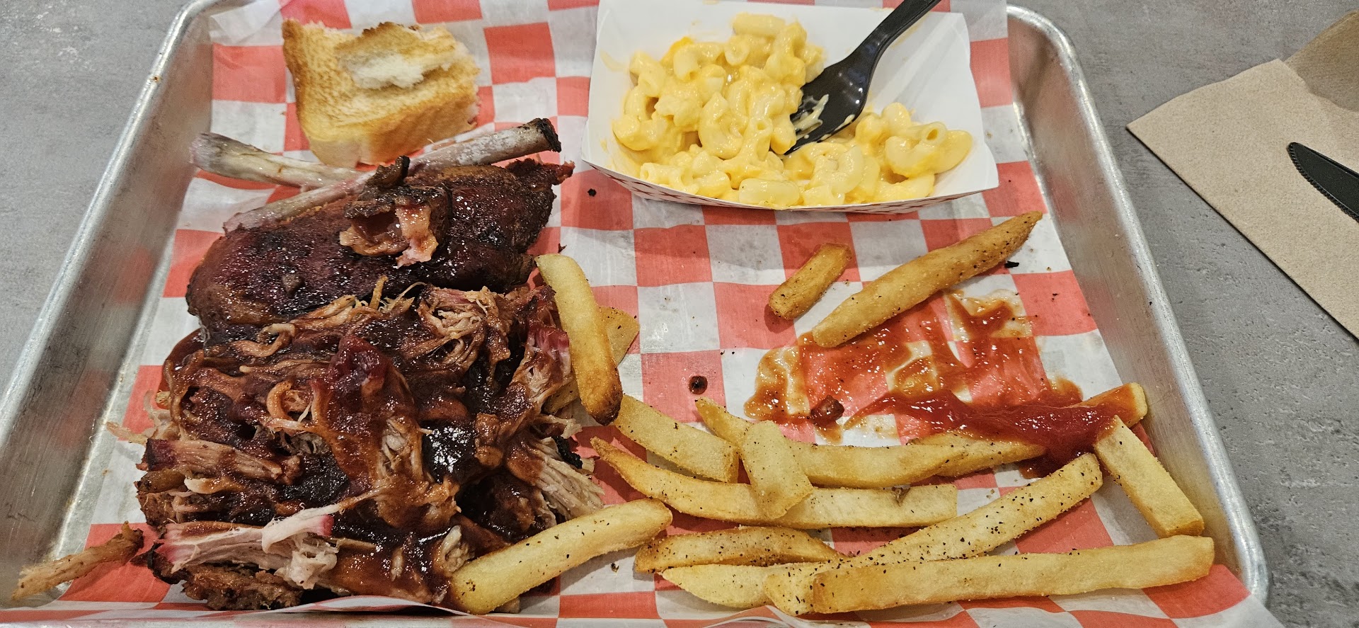 Read moreIt's been years since I've been here but nothing has changed. The staff is extremely friendly and pleasant. Your order is taken and the food is bought to your table in a very timely manner. She asked us several times if we needed anything. We did not. It's not your typical waitress-type restaurant. It's really a level above fast food but miles better because you actually get what you ordered and correctly 🤣 It is time for Billy to do some redecorating. The booths came over with my ancestors and are torn or ripped in several places. Some of the tables felt like a permanent grime lives there. It needs a touch-up. Bad! The food was good as expected. I had ribs, pulled pork, mac-n-cheese and fries. We can gone and throw the mac-n-cheese and cheese away with those beat up booths. Everything else was excellent. My husband had brisket, ribs, and sausage along with baked beans and potato salad. He said the sausage was the best from a BBQ place he's had. He enjoyed his side...