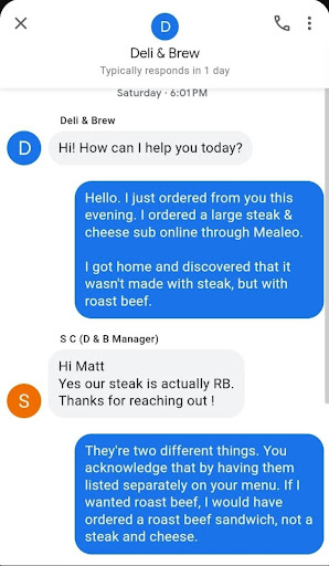 I've been to Deli and Brew about a dozen or so times. It was my go-to sub shop when my family and I were looking for a great sub, regardless of a whapping bill (for a family of four +2). My last visit has me second-guessing another return. Reasons: -when I walked in, it smelled along the lines of food or meat that had turned. The best way I can explain it is this - if you open a âwell usedâ refrigerator, in the summer, that has been off for a while. As this was a recent visit, I took my mask off for a second to smell the air... -This is a time were âeveryoneâ is obliged to Wear a Mask in public -especially food preparation staff! The lady who made my subs did not have one on at all! Why I continued with my order without asking her to put one on, I do not know....Iâm a passive person! But between the mask issue and the smell - it should have been a sign for me to rethink my order and walk out. But no... -I brought my six subs home. Three of us ate a 1/2 of our subs (to have the other half later) two eat all of theirs, and one person saved their sub altogether for later. Those who did eat were ill (with stomach issues) within hours of eating them. Needless to say, the other halves and the whole sub was garbage. Summary: Cleanliness of the place was obviously overlooked, and staff blatantly disregarded rules during such a crisis... It will be hard to come back from that experience. Secondary to all of this was spending almost $100 just to get sick and throw the food (money) out. As Shark Tank would say,â...