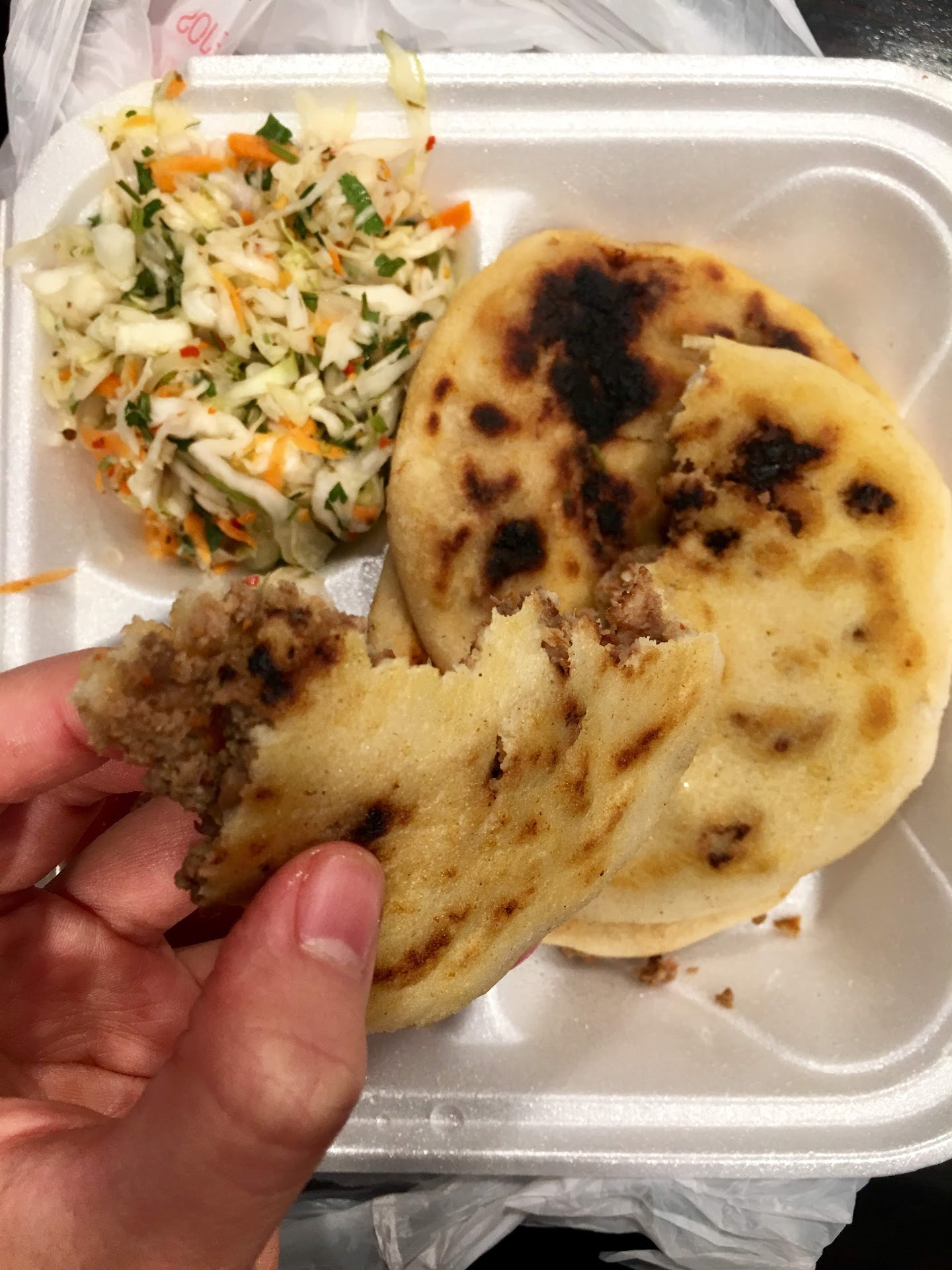 Wow, blown away by this local Latin food shop. Their extensive menu has breakfast specials, various tacos, Chimichangas, and Salvadorian bites and dinners. I wanted a couple of snacks so I went for several Pupusas and Corn Tamales. Everyone agreed that the portions for that price were already a winner. The flavours and textures of the Pupusas won my heart. At first, I was apprehensive that the inside goods (cheese, spinach, Ch, jalapeno peppers) would be a bit dry or bland. Nope, completely the opposite. The Chicken was filling, flavorful, and juicy. I think they must use a broth with some vegetables, like carrots, peppers, tomatoes to prep the ch, which was an amazing choice. The soft corn dough preserved the juiciness and each bite was delicious as you dipped into the slightly tangy tomato sauce (almost like a very mild salsa but not chunky at all) on the side. I'm not a big cilantro fan so the spicy cabbage slaw didn't matter to me. The Corn Tamales was just as special, that was just steamed instead of pan-fried.