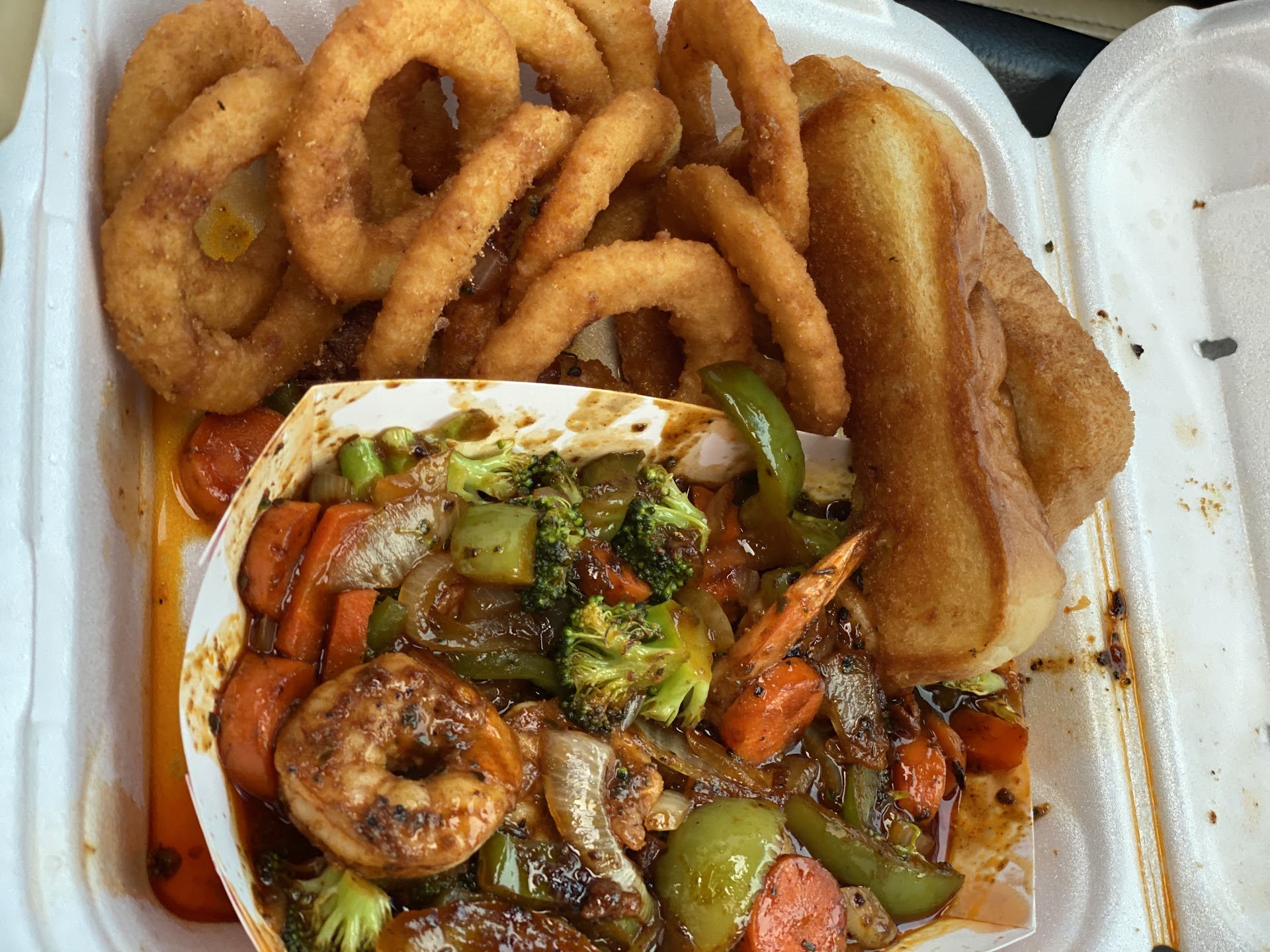 I never thought i would give this place a bad review but here it is. Yesterday, at 6:00 pm i ordered a shrimp stir fry , i knew they will be closing soon so was nervous if they would give whatever its there. I ordered shrimp stir fry with garlic bread and onion rings. So shrimp stir fry was just disgusting and the sauce was so much. And garlic bread? Oh man It was literally bread fried in oil there was no garlic. I saw a pic on review and thought stir fry would be a good one but i am not even sure if they even washed the...
