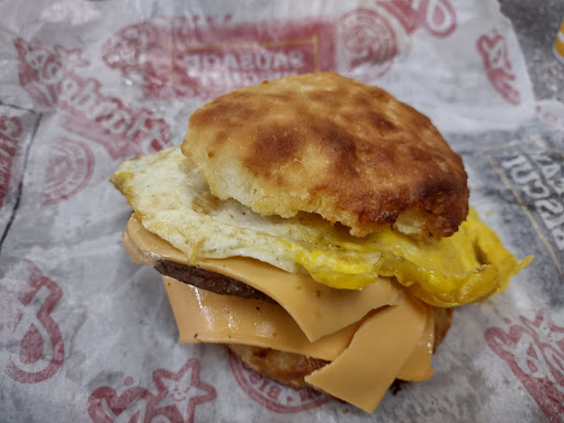 The food was delicious, the service was fast and friendly. The restaurant needs a renovation. I had the Super Sausage Biscuit meal. The service was quite fast. We dined in and were the only people in the restaurant around 10 a.m on a Tuesday. The flavor of my biscuit sandwich was excellent, the biscuit was crumbly and buttery, the hash browns were extra crispy. The floors in the restaurant felt sticky. The decor and furnishings seemed a bit old. The parking lot has lots of cracked asphalt. The soda machine inside was out of order. My husband used the restroom and said it was pretty bad. In general, I highly recommend this restaurant if you are in a hurry and want to get your meal to go. They need to upgrade the building and grounds to earn a 5...
