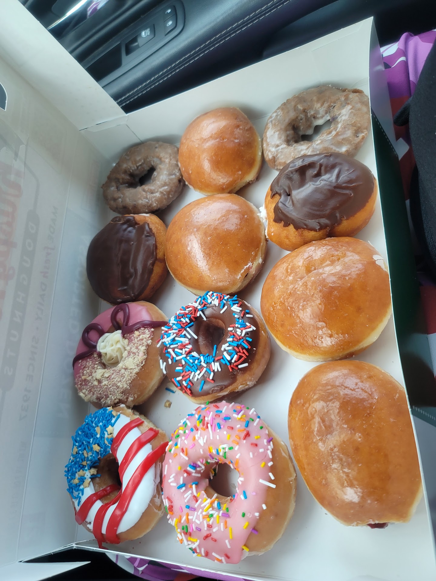 The donuts were okay. The plain glazed ones were very bland with almost no flavor. The frosted and sprinkled ones were okay. Nothing to write home about but not bad just kind of average.