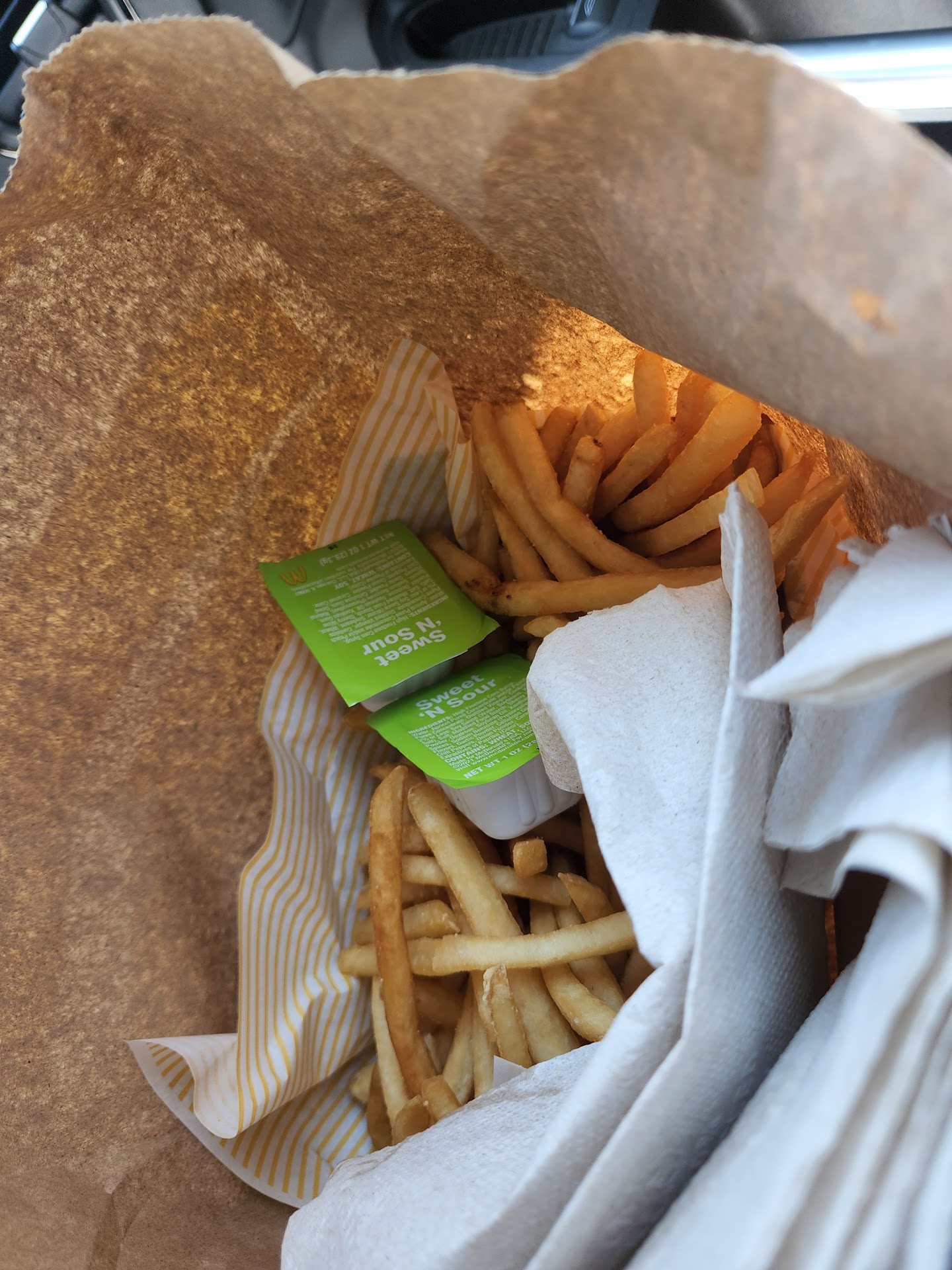 The fries must have been staged for bagging and waiting on the nuggets too, because they weren't fresh and hot like the nuggets were :(