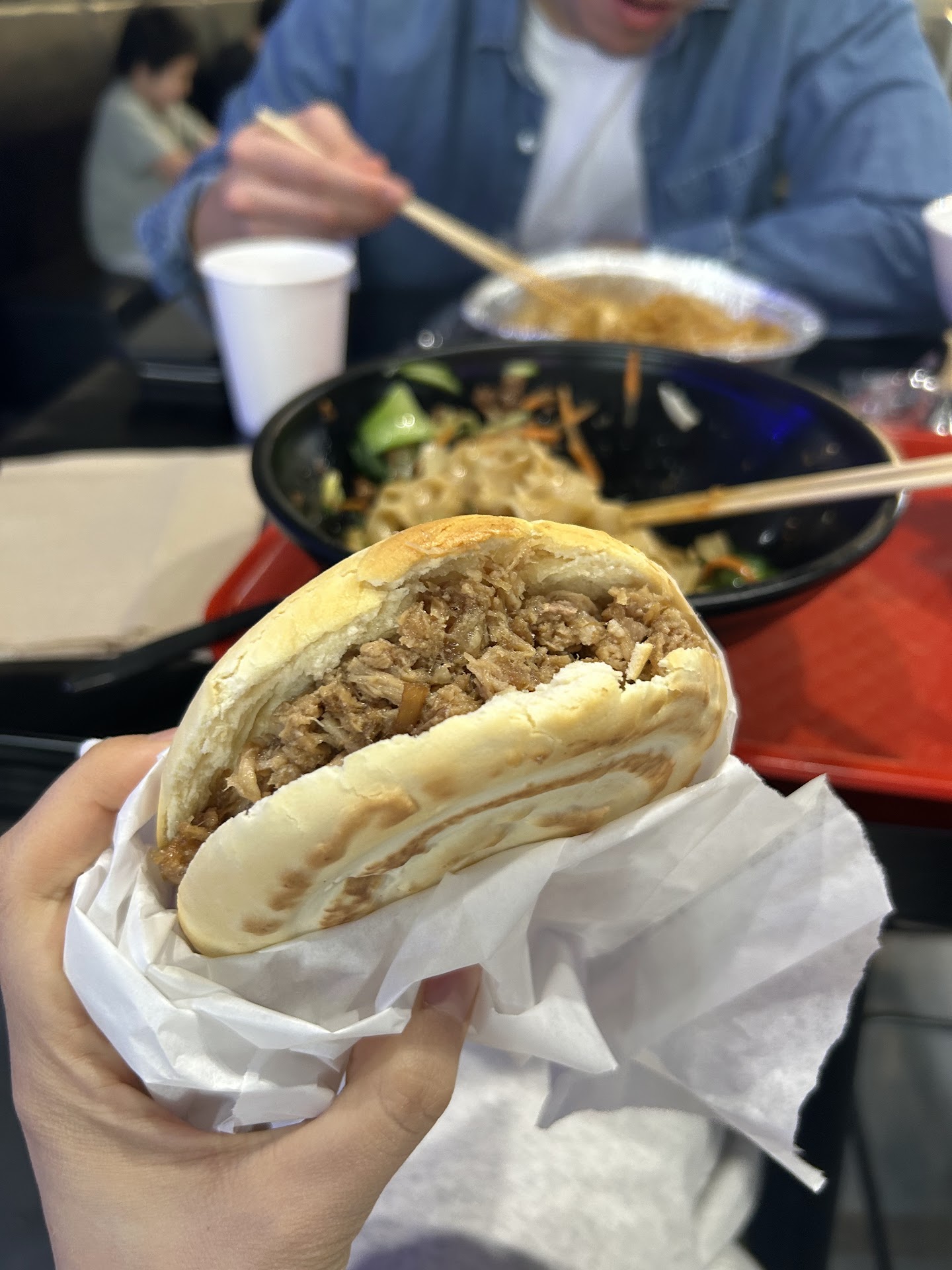 Food was good and priced at a great value! Rougamo Pork: 3/5. Not enough flavor. Tea Eggs: 5/5. Nice marinated eggs to eat on the side with rice. Spicy oil noodles: 5/5. Love the wide noodles. The texture was so chewy and fresh overall. It doesn’t come with any meat tho. noodle with soy bean paste: 4/5. Average. braised chicken: 5/5. Great depth and umami. soaked bun noodle soup: 4/5. Very interesting texture with the soaked noodles/bread. It’s very starchy. Broth had hint of lamb taste.