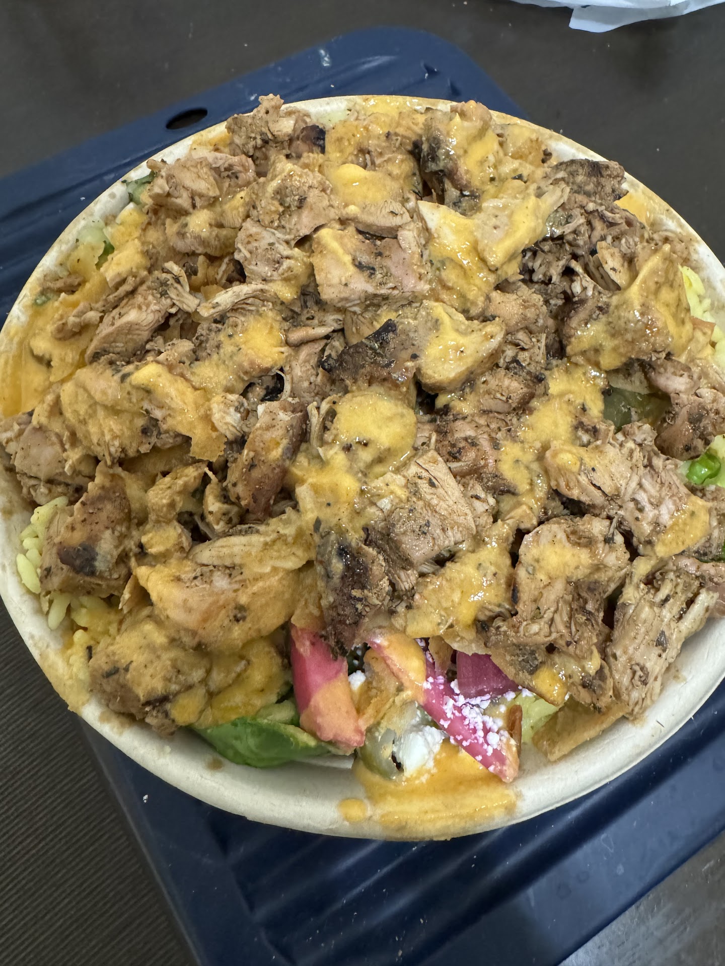 Ā Ā Ā Read moreIt is like a Mediterranean Chipotle! Yet cleaner, bigger portions and better tasting! I have been going to that place for couple of years now. I dined in multiple times, but this picture was taken from a Door Dash delivery order. You basically build your bowl or wrap. They do have premade combinations that you can just order, but building your own bowl is the way to go. You start by a base of different types of hummus, garlic sauce, grilled veggies and rice. You can add all or none, itās really up to you, but you have no limit on how many items you can add. After the base, you have tons of topping options, then you add your protein. For protein options, my favorites are chicken shawarma (not really shawarma, more of grilled chicken, but it is really good), and the chicken cream chop. Steak shawarma is little bit dry, but not bad. Then you end with a sauce on top. I would be careful while building the bowl as you can end up adding huge amounts that pile up! I also tried their baklava. I would say not the best I ever tried, but good enough for after meal dessert! I have seen this place quality going down few months ago, but looks like theyāre back on track and Iām happy for that as I...