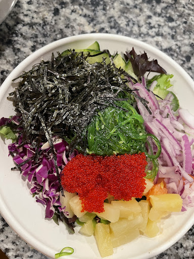 Service/Food: The employees that prep our food were nice, efficient, and knew how to work in a busy setting. The food was separated by the toppings and the meats portion. There was a person at each station (there's about 2 or 3). And the only thing that holds you up is the person ordering every topping in their Poke bowl (which who can blame them, it's good!) So there may be a slight wait, but it's worth it. The only thing that bothered me a little bit was the crab that was there, it looked like imitation crab (which i believe is made from Pollack)