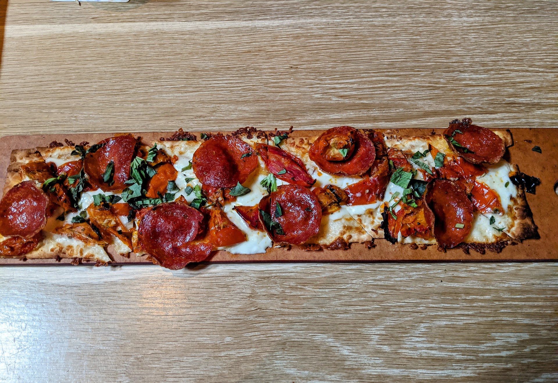 We were seated next. Our server Rosetta was awesome. She came to our table immediately. The food presentation was amazing. However, I was not impressed with the taste of my food. My steak and potatoes were cooked to perfection, but had absolutely no flavoring. I was eating just a prepared steak and potatoes. On the other hand, the asparagus was seasoned great! As well as our flatbread pepperoni pizza appetizer was delicious.
