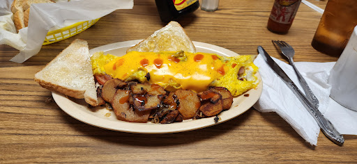 With all of the positive reviews giving it a 4.3 stars, it seemed like a perfect pit stop for breakfast. We were told to sit in the back and the friendly waitress took our drink order. A round of flat sodas soon arrived. After ordering off filthy menus we noticed how dirty the table, floor, ceiling and windows were. Not sure if it was dead bugs or mold on the blinds. My son started playing drums with the very crisp bacon, I was hunting for fruit in my strawberry pancakes and the sausage and gravy had zero flavor. We've eaten at many small town places but never finished with such an urge to wash our hands and flee. So not sure what happened but was unfortunately a...