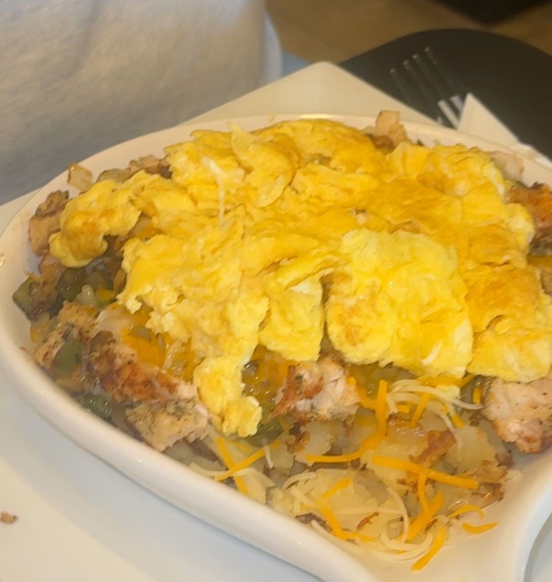 They roll out two pieces of toast, one with eggs, the other with sliced avocado that isn’t even remotely ripe. The avocado was rock hard and impossible to spread, so I’m sitting their eating a dry piece of toast with rock hard avocado slices on it, then the other slice with my eggs… who doesn’t stack the eggs on top of the avocado? The dish was not good, wouldn’t recommend, unopened avocado on one slice of toast, then eggs on another slice of toast, can’t overlap them as a normal person would do.
